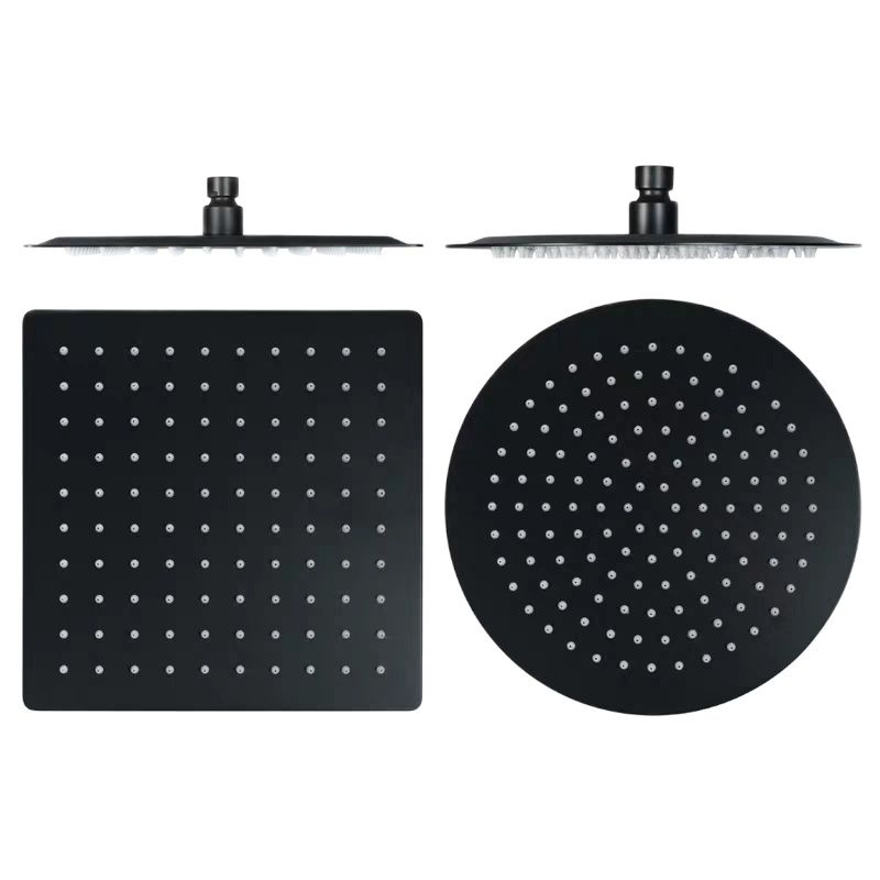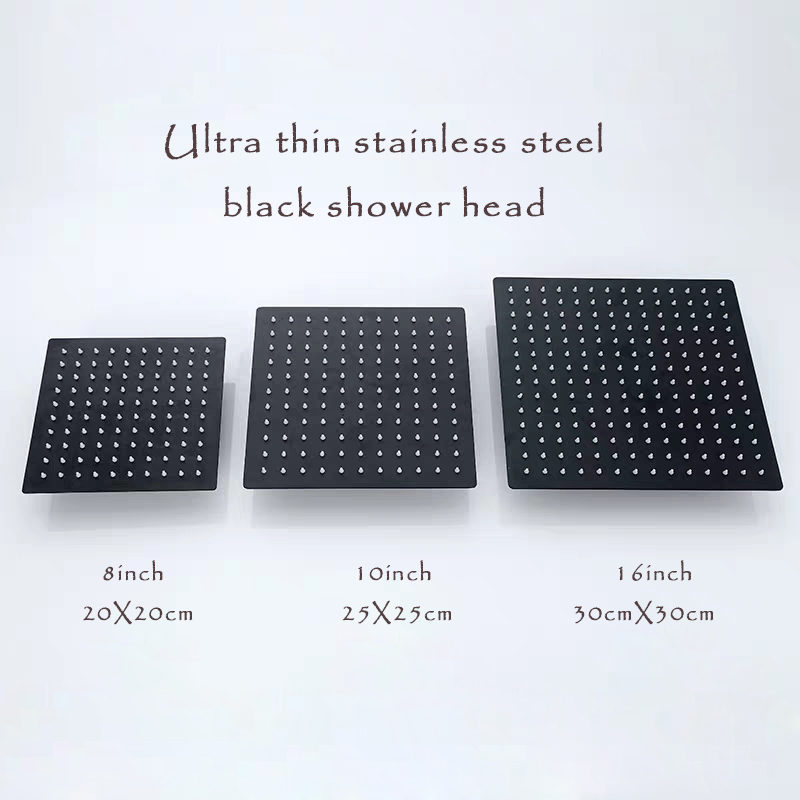 Specifications: 304 black 8 inch dome spray, 304 black 10 inch dome spray, 304 black 12 inch dome spray, 304 black 8 inch square top spray, 304 black 10 inch square top spray, 304 black 12 inch square top spray