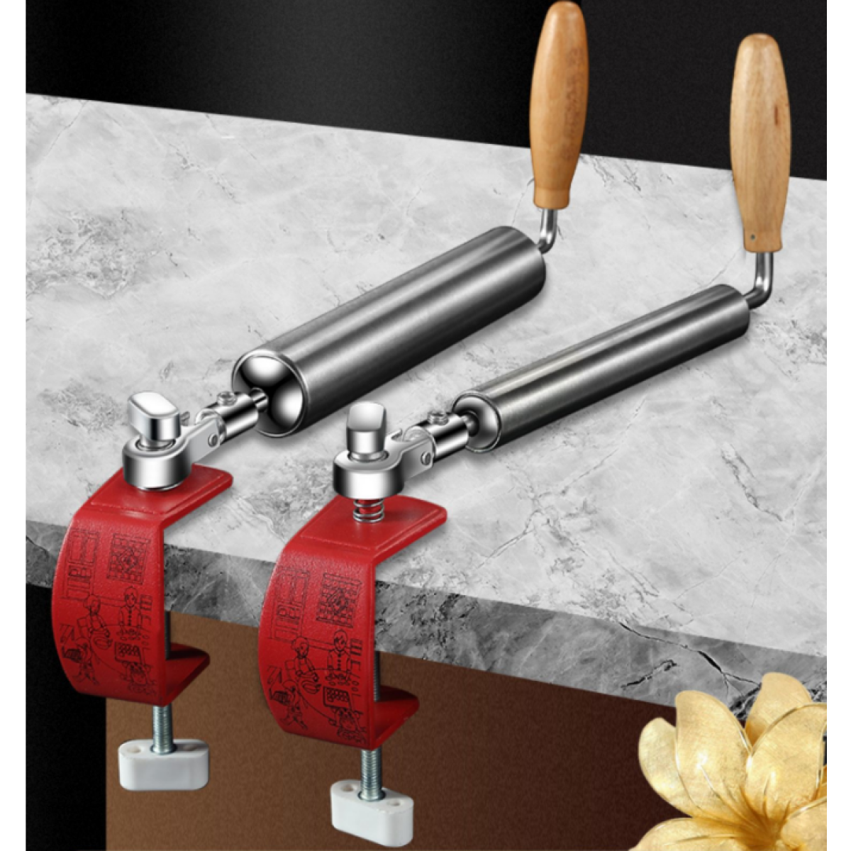 The adjustable buckle is more stable and less labor-saving. The spiral buckle is easy to install and firmly clamp the desktop.