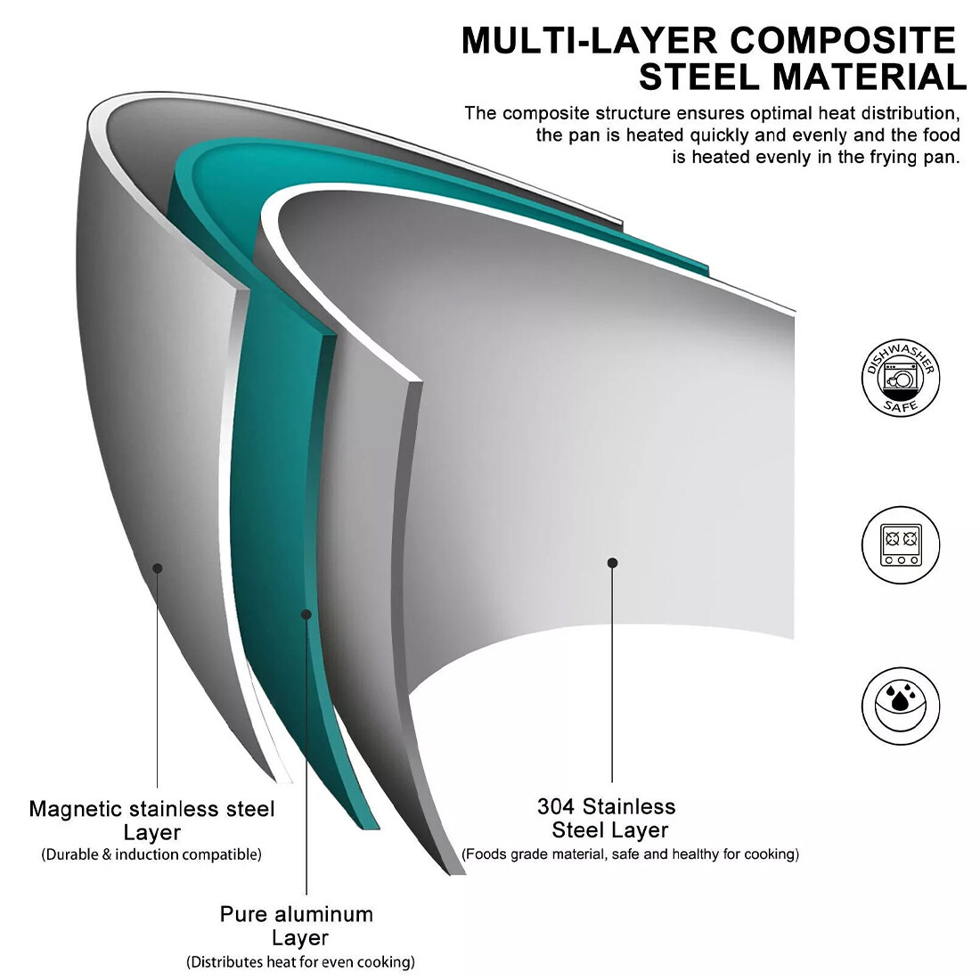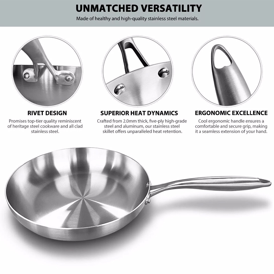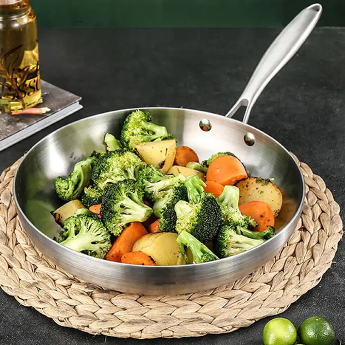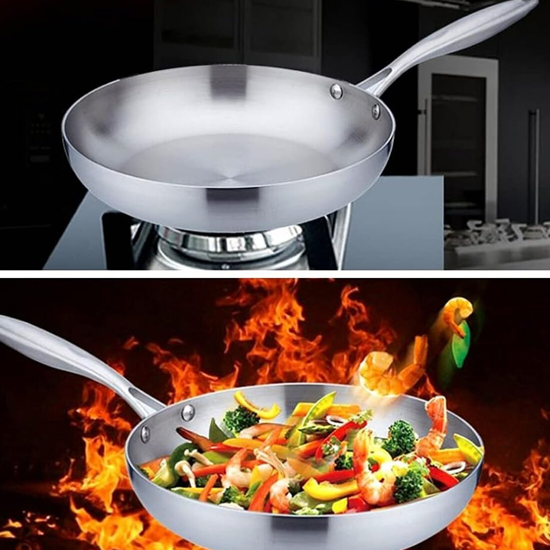 304 Stainless Steel Frying Pan NonStick Pan Fried Steak Pot Uncoated Kitchen UK