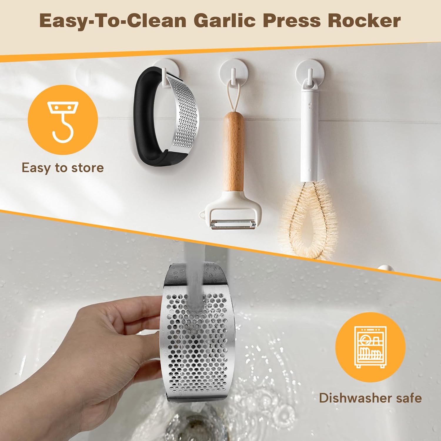 【Effortless Garlic Mincing and Crushing】Our garlic press rocker is engineered for smooth and efficient mincing with minimal effort. The stainless steel construction and innovative rocker design ensure each clove is minced quickly, saving you time and energy.
