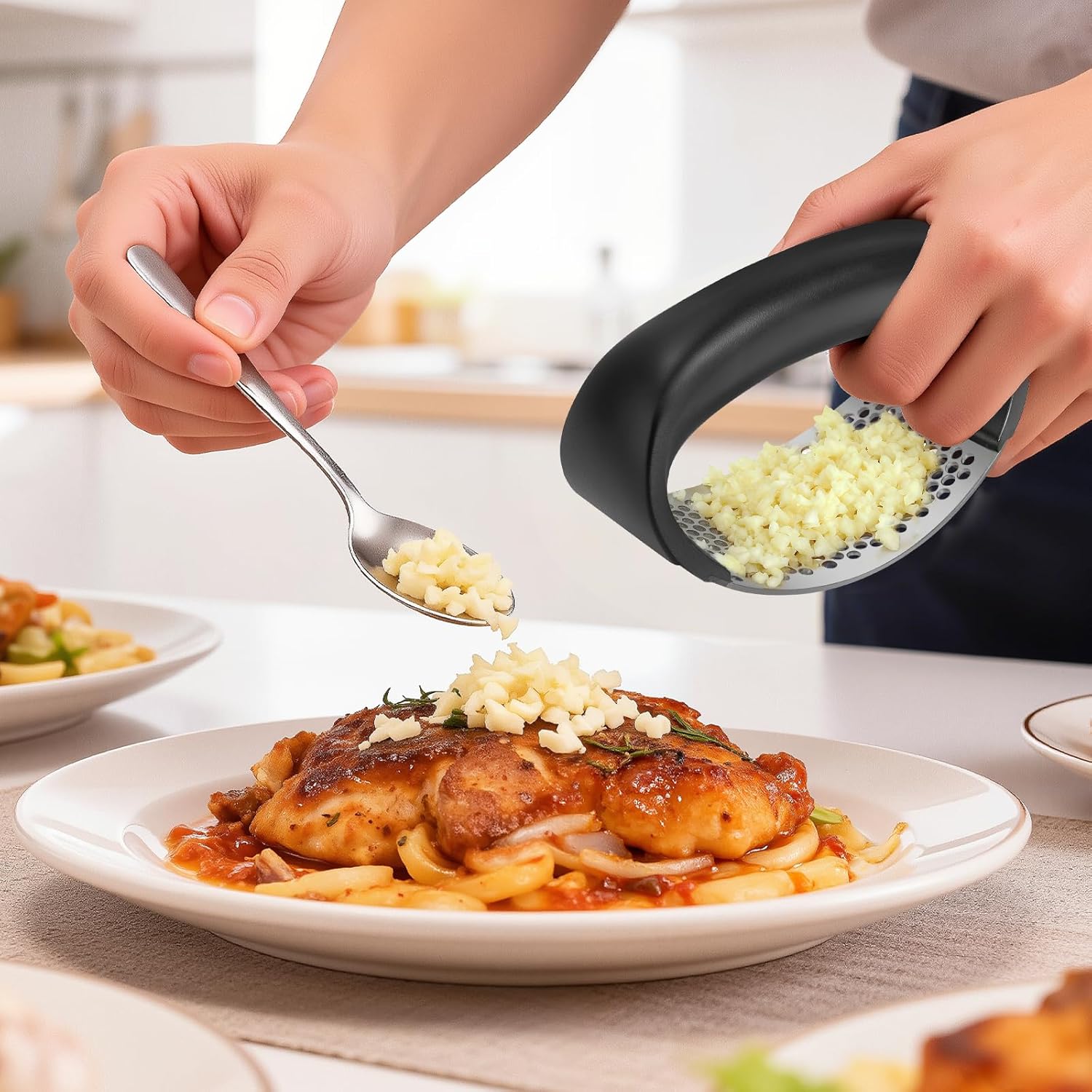 【Premium 304 Stainless Steel Construction】Made from high-quality 304 stainless steel, this garlic crusher is designed for long-lasting durability. Unlike other garlic tools, it resists rust and corrosion, making it a reliable kitchen companion for years.