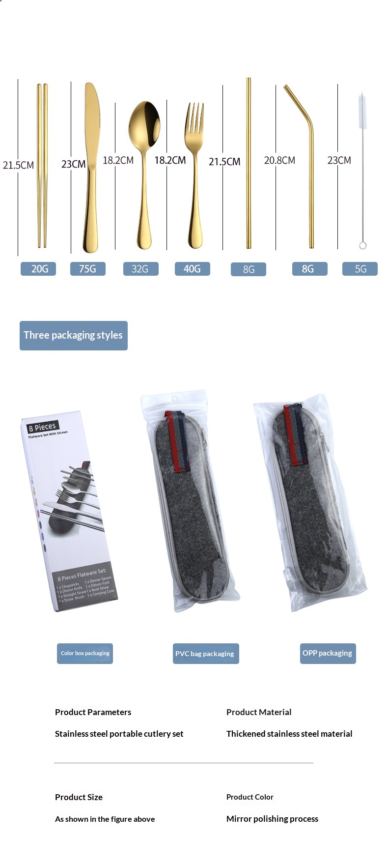 Specifications: 8-piece set, 8-piece set (with knife), gold, rose gold, black, rainbow, blue, purple