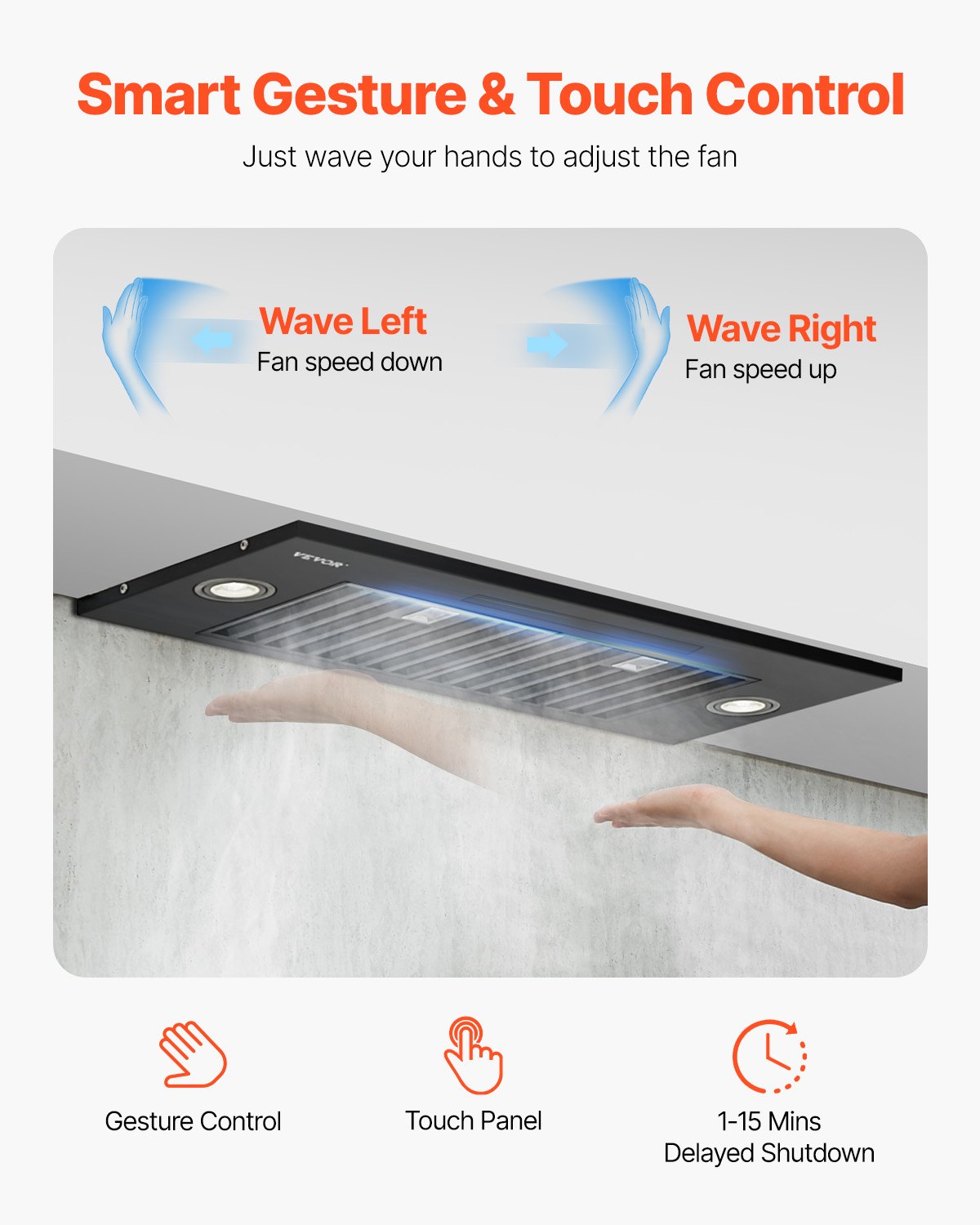 800CFM Powerful Suction: Enjoy efficient air purification with our insert range hood's robust 800 CFM airflow. Featuring a 4-level fan speed control, it effectively eliminates smoke and odors from your kitchen while maintaining a quiet operation of less than 65dB. ETL certified for safety and performance.