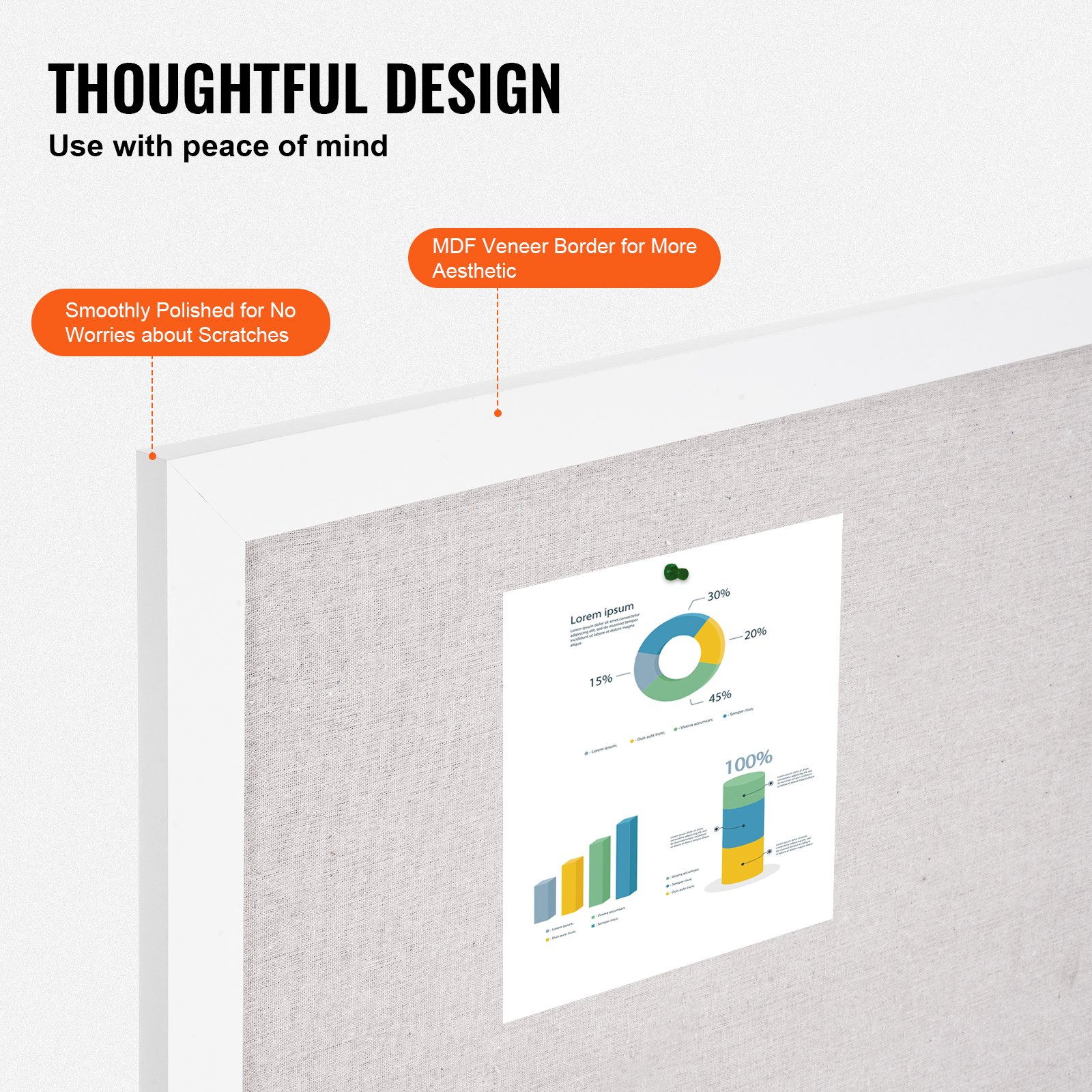 Upgraded Linen Surface: Our notice board features a white polyester-cotton surface with a 7mm thick fiberboard core. It’s designed to resist unsightly pin holes even with long-term use. The surface is reinforced with glue and press plates, preventing bulging and ensuring secure and stable pinning.