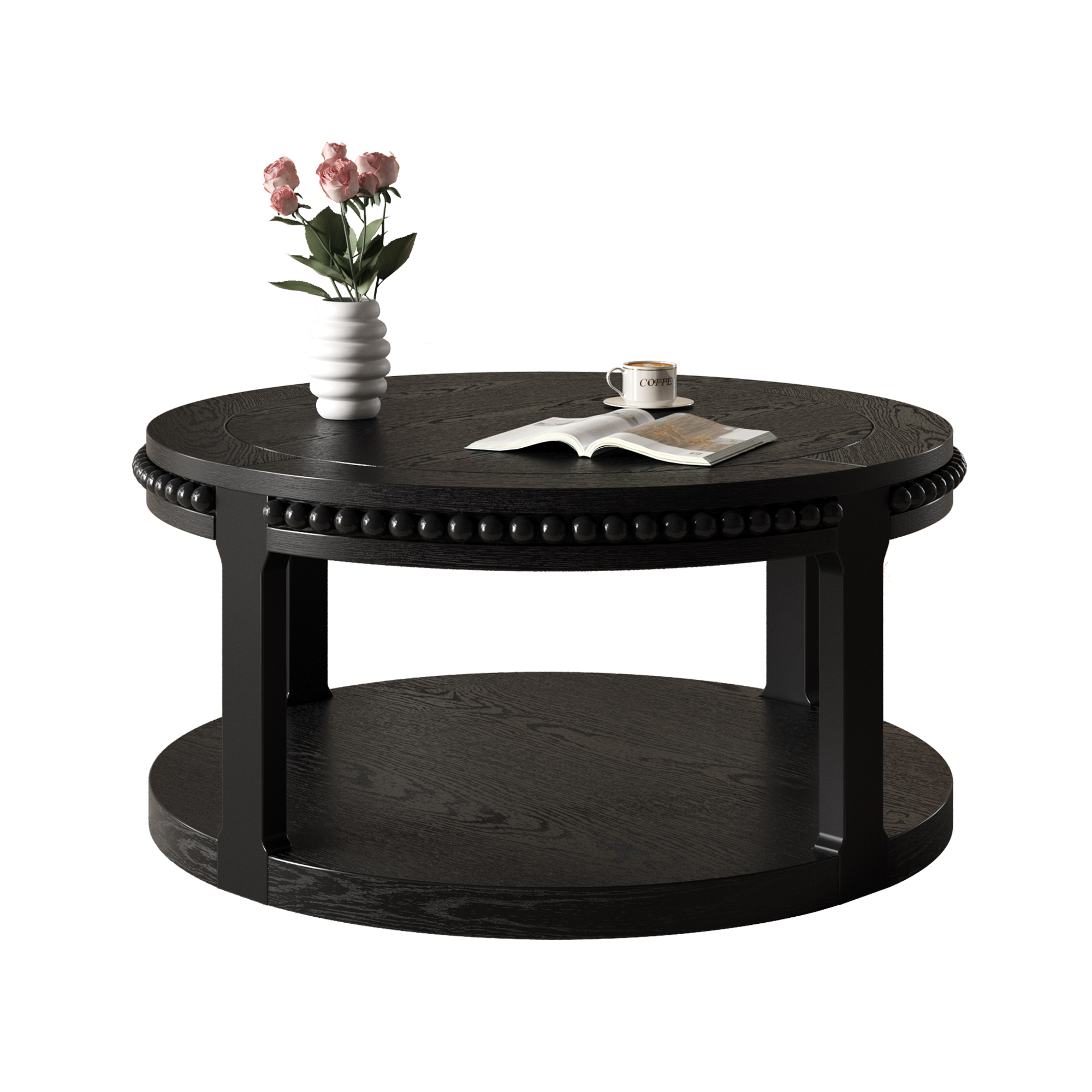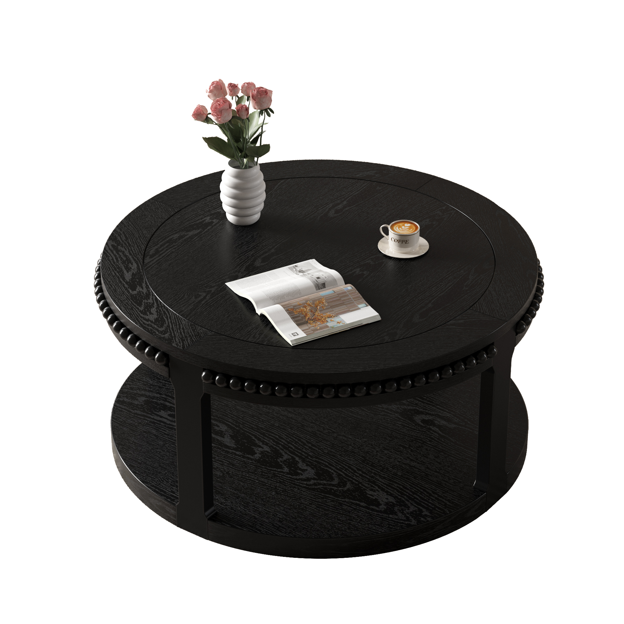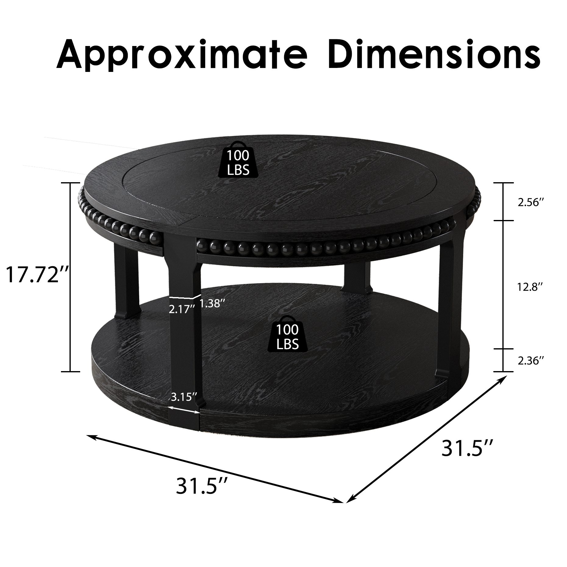 Product Name:31.5 Inch Solid Wood Round Coffee Table for Living Room,2-Tier Rustic Wood Desktop with Storage Shelf Modern Design Home Furniture (Black)