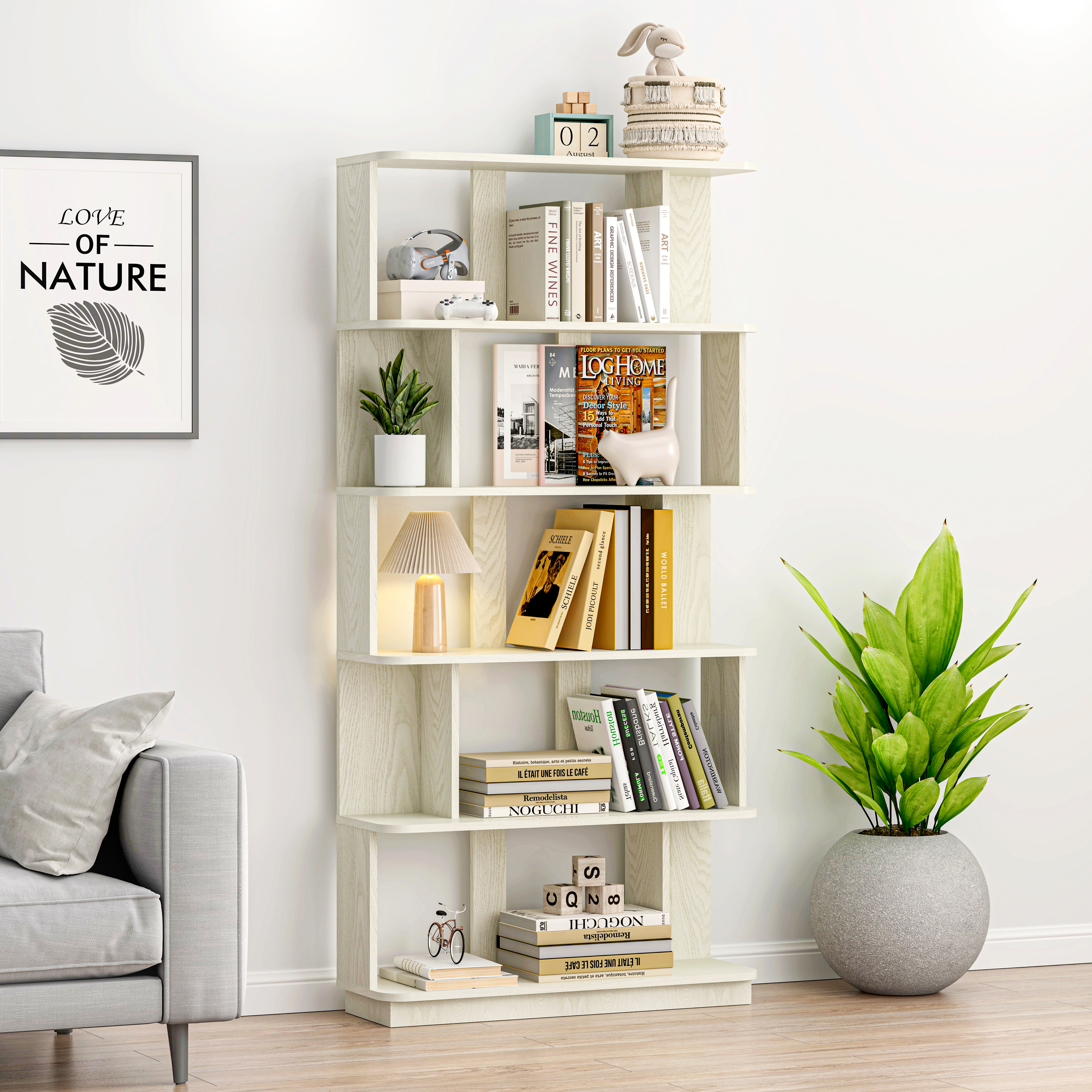 Product Name:31.5" L x 64.56" H Free combination bookshelf Modern 5-Tier Open Storage Bookcase MDF Wood Display Shelving for Living Room home Office bedroom decor organizer, Media Storage Shelves