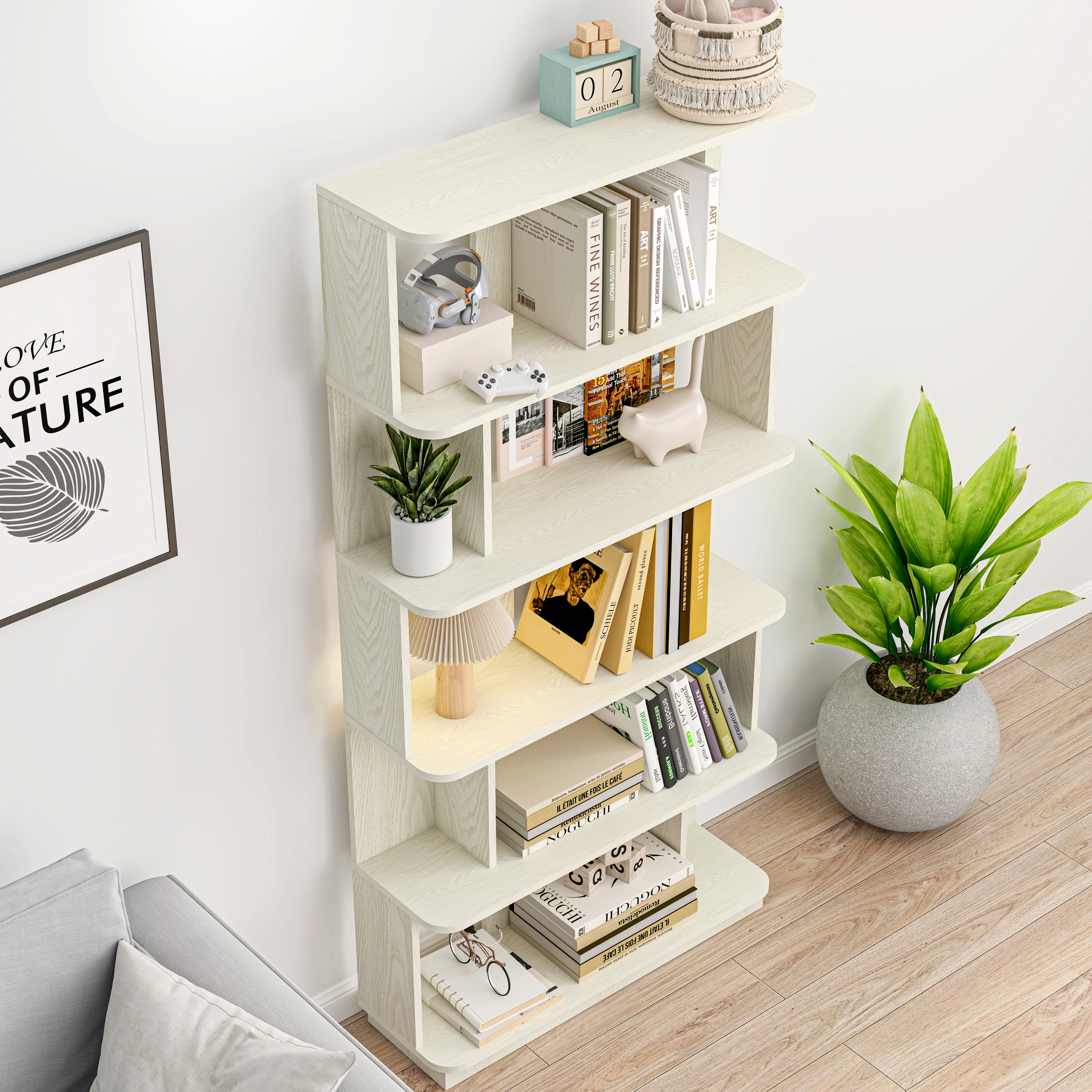 - This free-standing open storage bookshelf provides 5-tier spacious open compartments, which not only can be used to display your souvenirs, trophies, and collections, but can be used to store books, novels, and magazines. It is widely applicable to various occasions, such as the lounge, living room, bedroom, office, etc. It can be placed in any corner or next to other furniture cabinets etc.