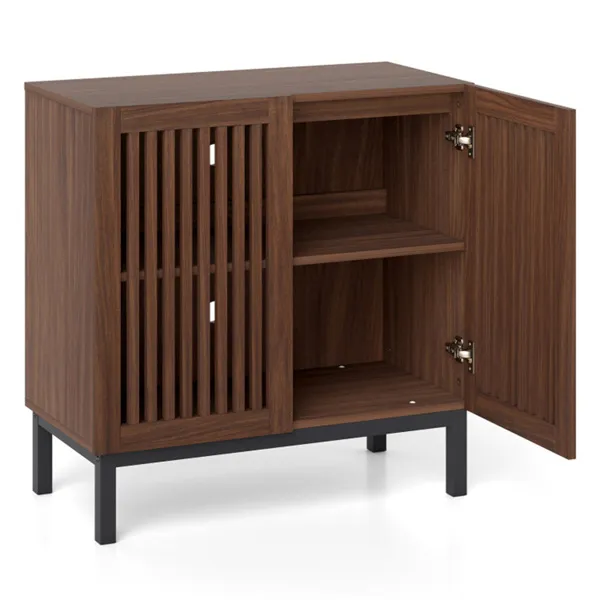 32" Buffet Sideboard Cabinet With 2 Doors, Farmhouse Storage Cabinet (Walnut + Black) With Adjustable Shelf
