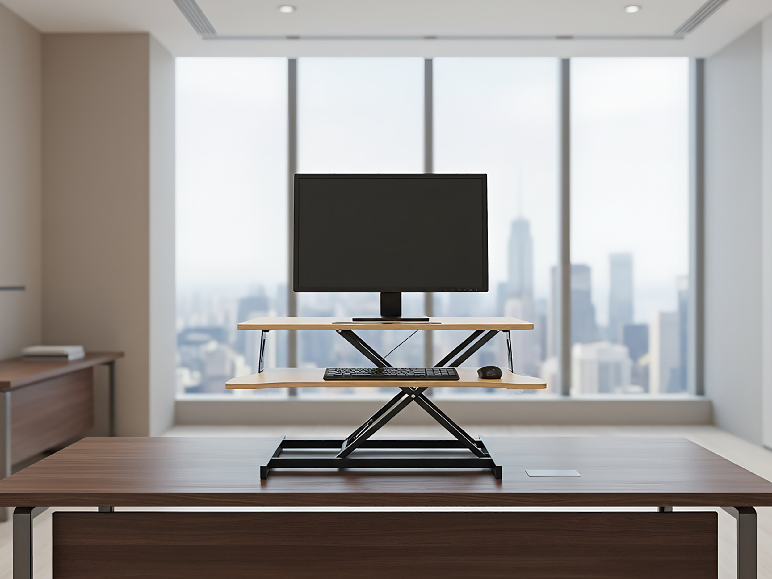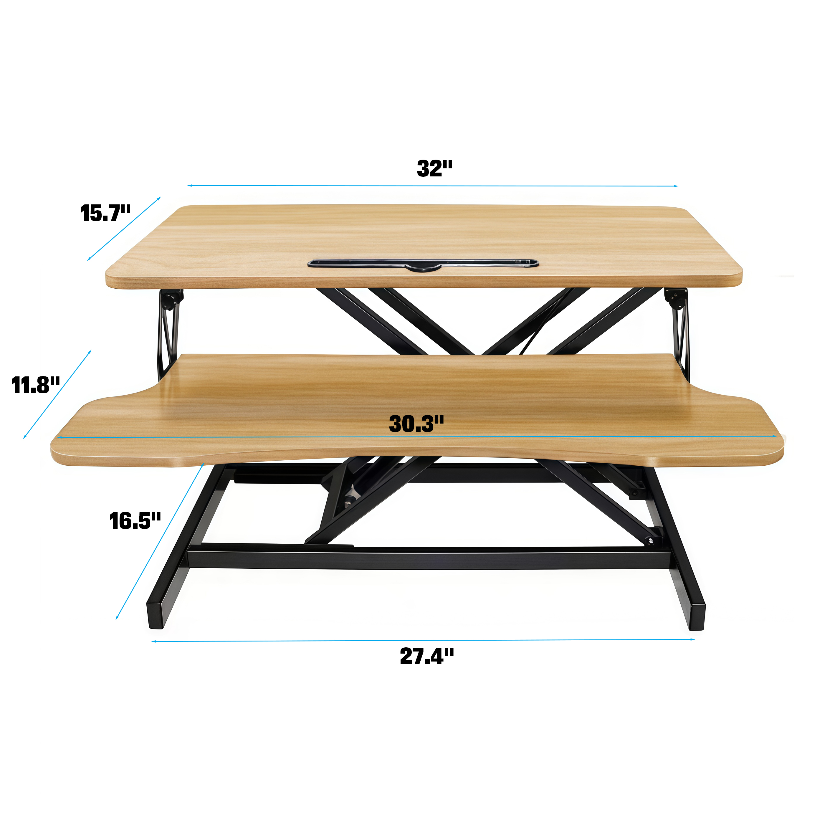 Product Name:32 Inch Desk Converter, Height Adjustable Sit to Stand Riser, Dual Monitor and Laptop Workstation with Wide Keyboard Tray, Standing Computer Desk, Natural Color