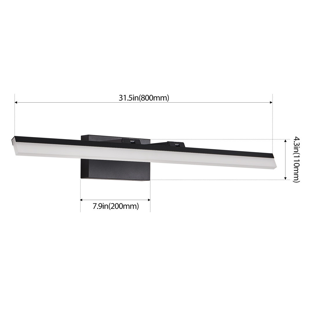 Sleek, Modern Design: The minimalistic, contemporary style with a black metal base and clean lines makes this vanity light a perfect fit for modern bathrooms, providing a stylish and understated look.Energy-Efficient LED: Built-in LED lights provide bright, long-lasting illumination while being energy-efficient, helping to reduce electricity costs and extend the life of your light fixture.Perfect for Bathroom Use: Ideal for illuminating mirrors, sinks, or vanity areas. Its sleek design is perfect for enhancing the lighting and ambiance of your bathroom without overpowering the space.Bright and Even Light: The integrated LED strip offers uniform, glare-free lighting, making it perfect for tasks such as grooming, applying makeup, or shaving.Space-Saving Design: Its slim, wall-mounted design allows for easy installation in smaller spaces, making it ideal for bathrooms with limited room for larger fixtures.