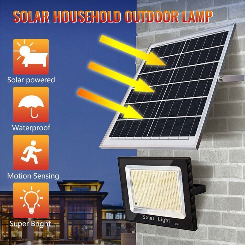 Specification: Name: LED solar light kit Material: PVC Battery: lithium iron phosphate battery Use time: 6-12 hours Charging: 5-8 hours Protection class: IP66 Length of waterproof line:10m Illuminatable area: 300 square meters Control method: intelligent light control + remote control operation + brightness adjustment + timing Solar panel: 100W/6V Light source power: 300W Luminous flux: 3000lm Battery: lithium iron phosphate battery Battery capacity: 3.2V/5000mAh Packing List: 1 x Solar Panel 1 x Lamp Body 1 x Remote Control |