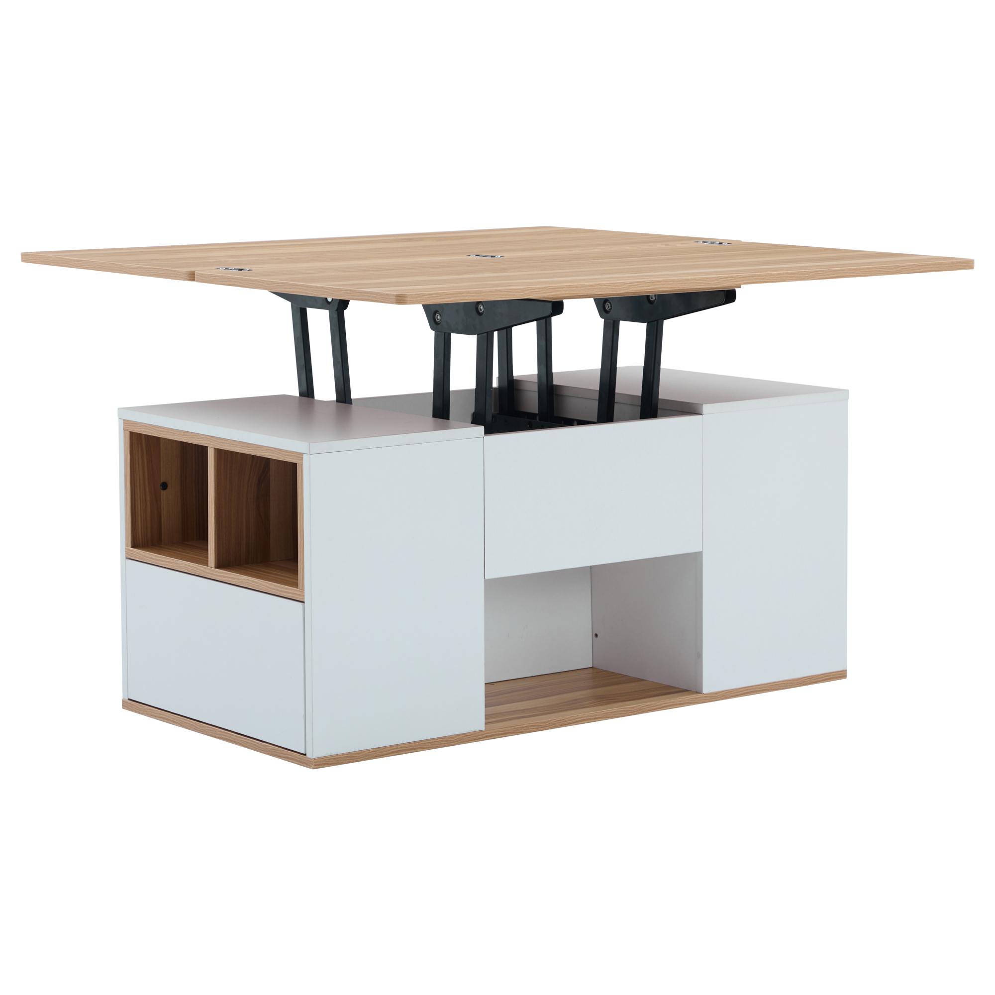 Product Name:326450455WAANEW) White & Oak Coffee Table With Storage, Lift Up Coffee Table For Living Room, Coffee Table With 2 Drawers Lift-Top Sofa End Tea Tables for Living Room Furniture
