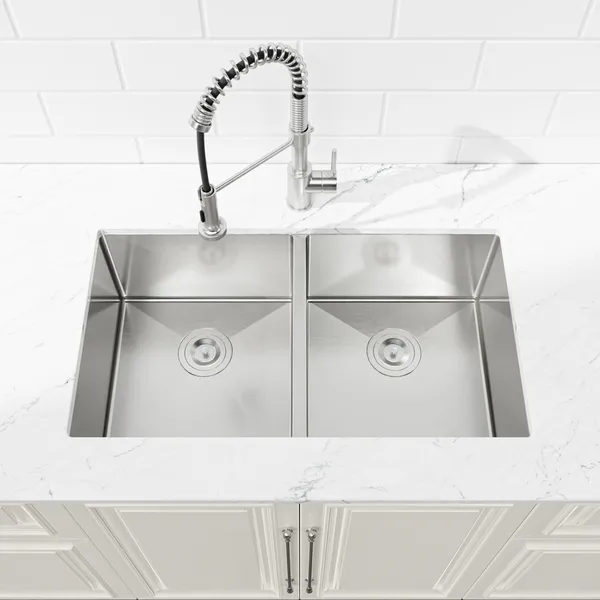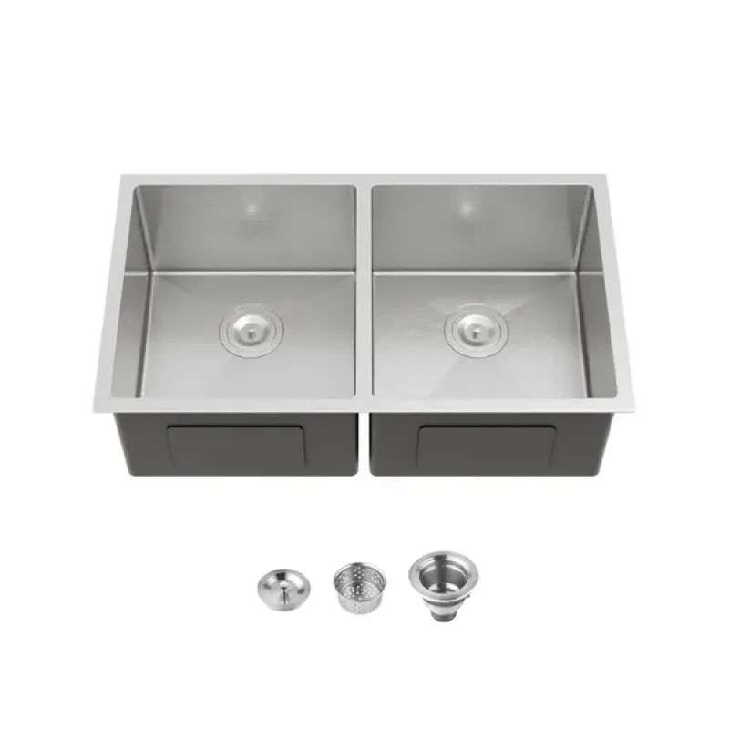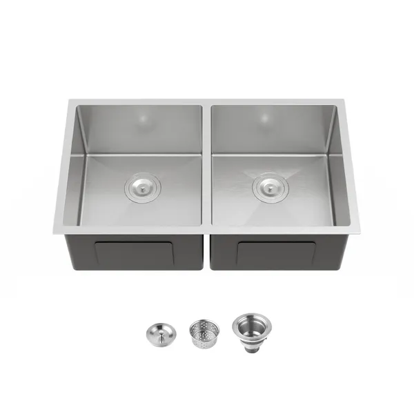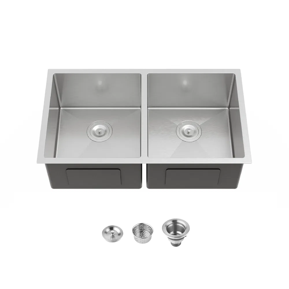 33'x19' Embedded Double Bowl Kitchen Sink, Undermount Handmade Sink In Brushed - Sink Only - Unable Ship Weekends, TK And TEMU Only For Pickup