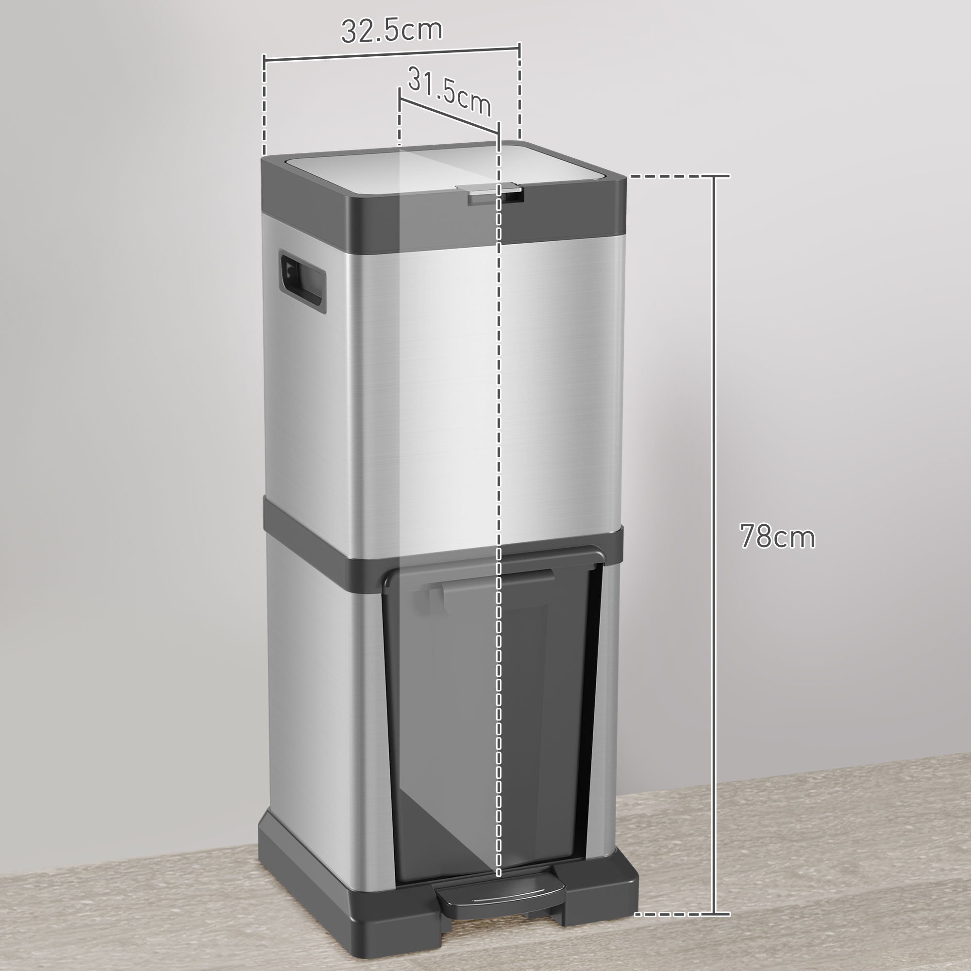 Enhance your eco-friendly lifestyle with 's double kitchen bin, designed for the conscientious consumer. This sleek, stainless steel bin features a 20L top compartment and a 14L tilting bottom bin, making waste separation easy and efficient. The fingerprint-resistant finish ensures it remains pristine, while the deodoriser holder keeps your kitchen fresh. Ideal for those committed to reducing household waste, this bin simplifies recycling and promotes a cleaner, greener home environment.