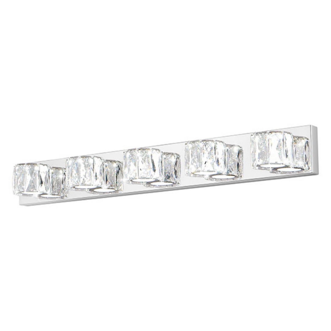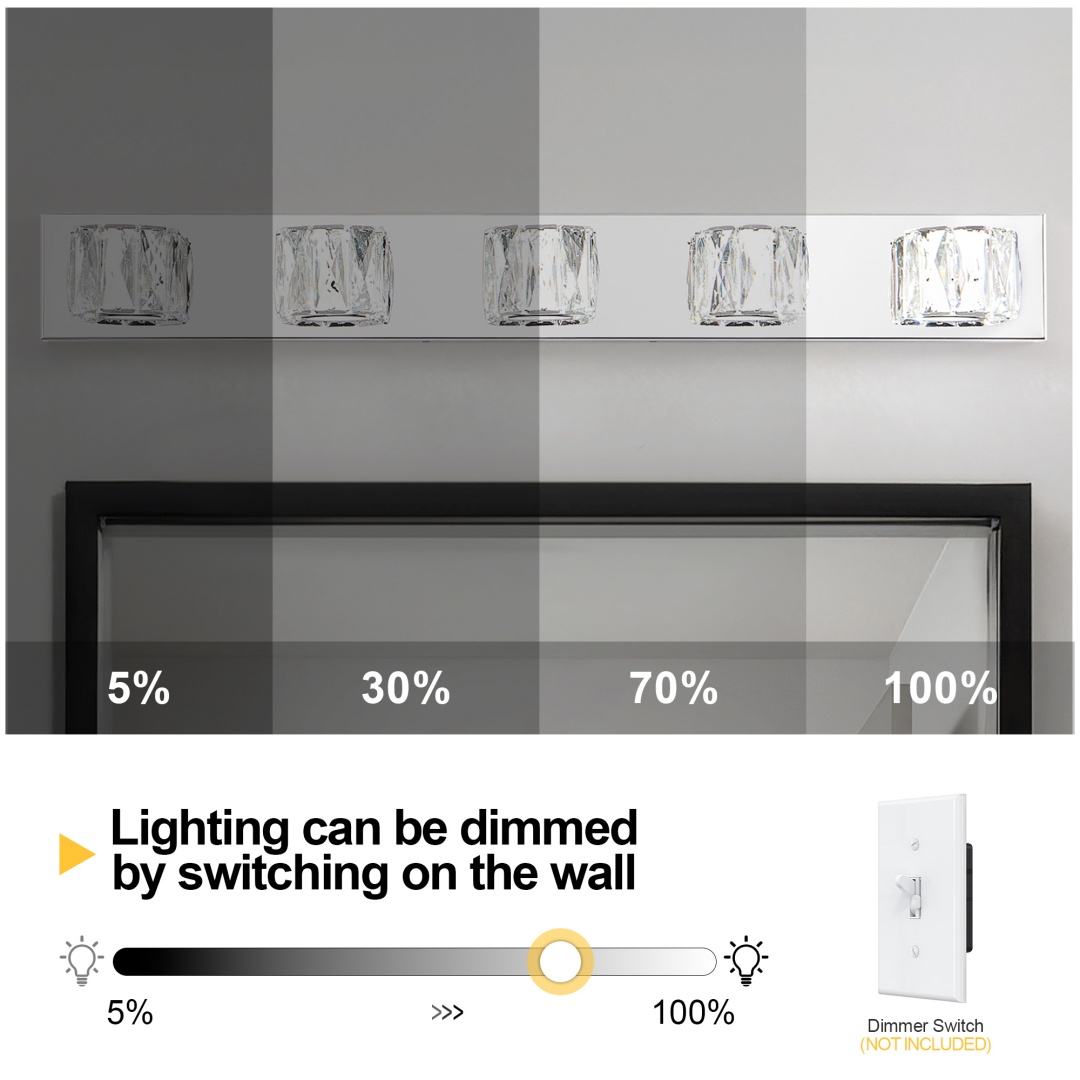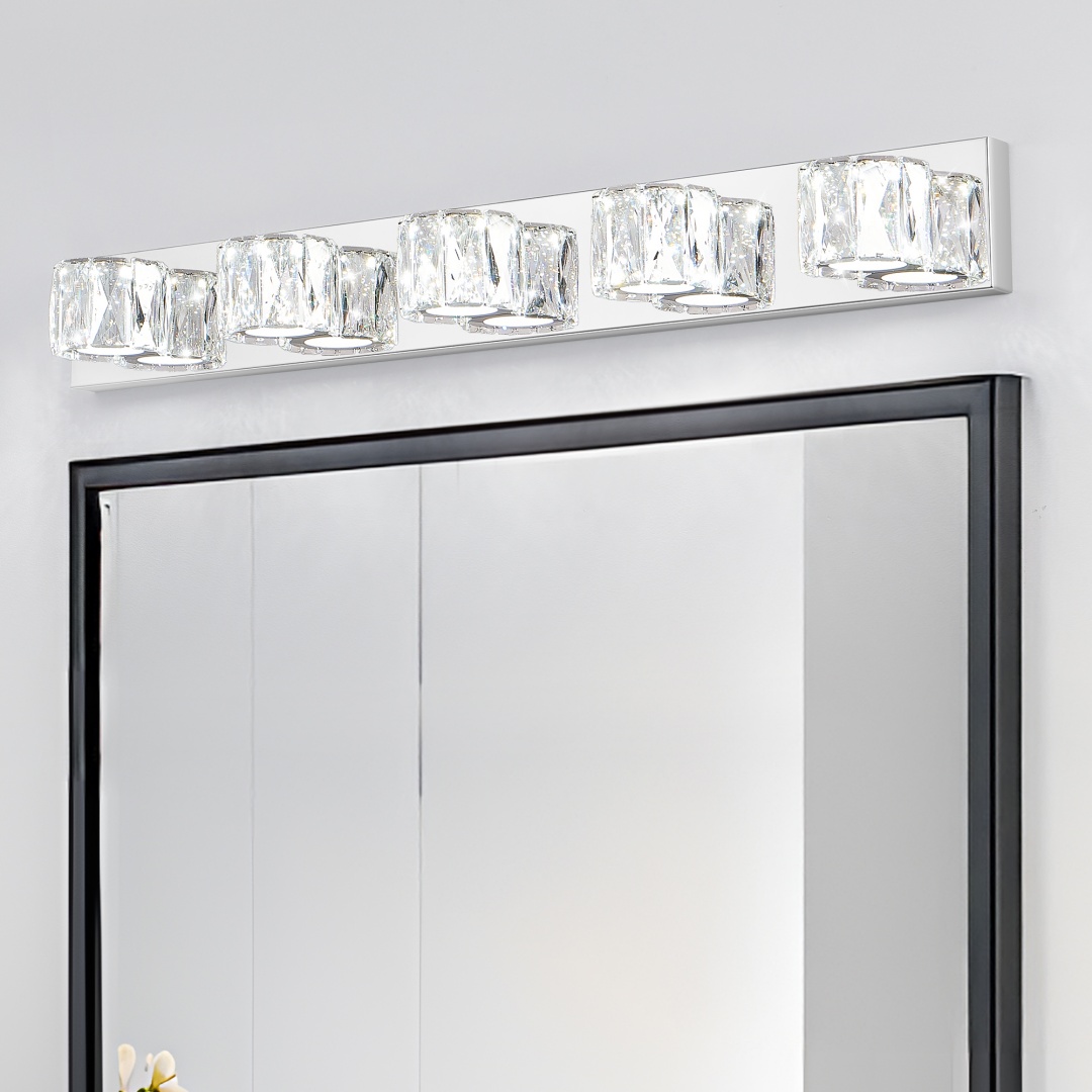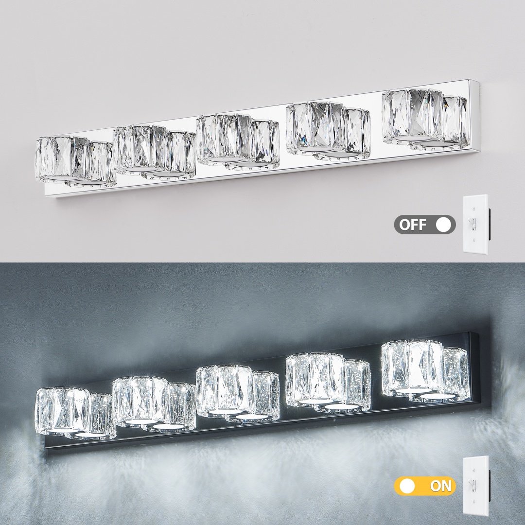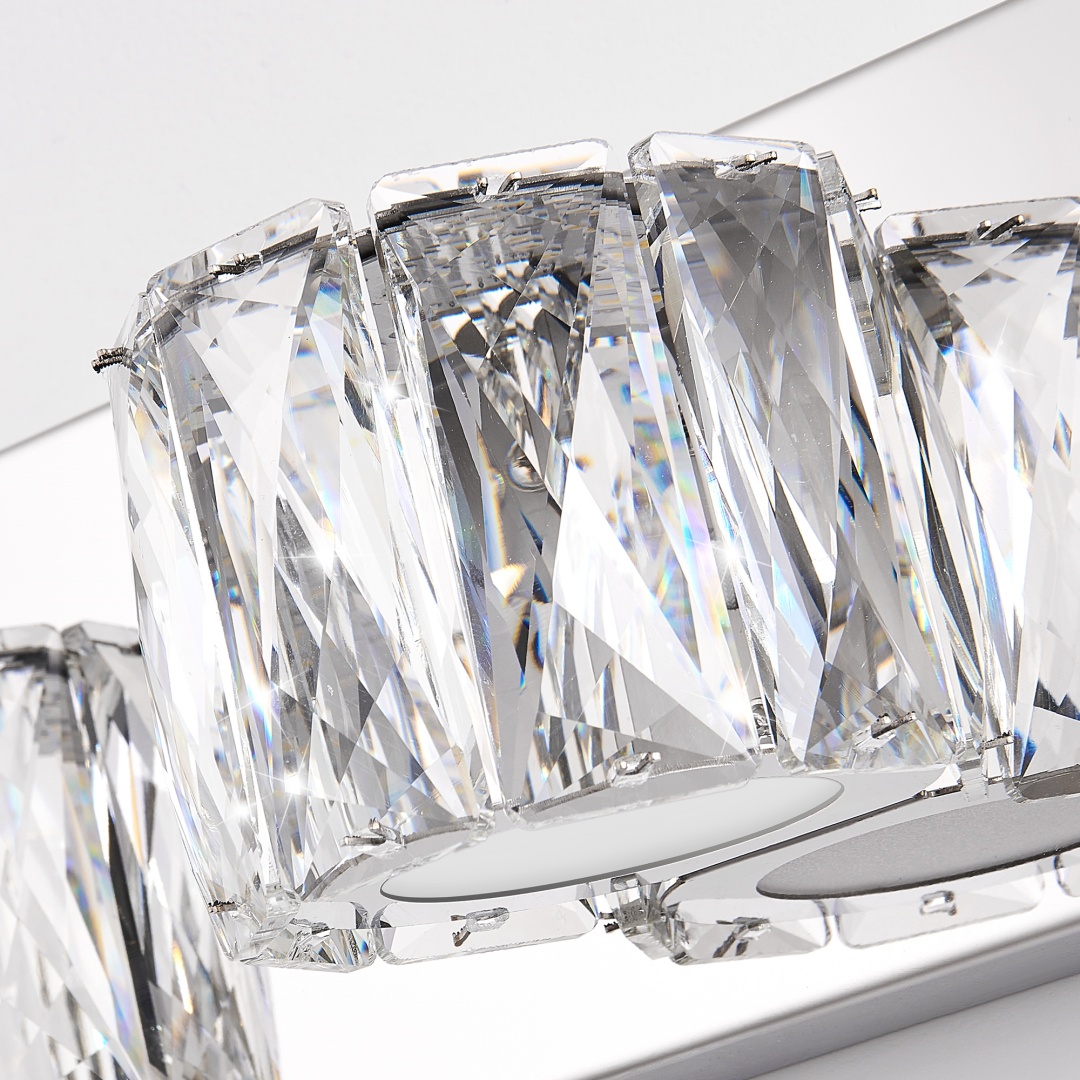Modern Chrome Finish: The sleek chrome base adds a contemporary, polished touch, perfectly complementing the sparkling crystal shades for an upscale, modern aesthetic.Elegant Crystal Lampshade Design: The dazzling crystal shades with clear diamond cuts create a sophisticated and luxurious look, adding a touch of glamour to your space.Built-In LED Lighting: This wall sconce comes with integrated energy-efficient LED lights, providing long-lasting, bright illumination without the need for separate bulbs.Easy Installation: Simple to install with all necessary hardware and instructions included, so you can quickly enhance your space with this eye-catching light fixture.