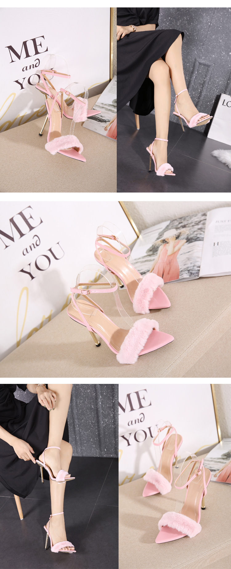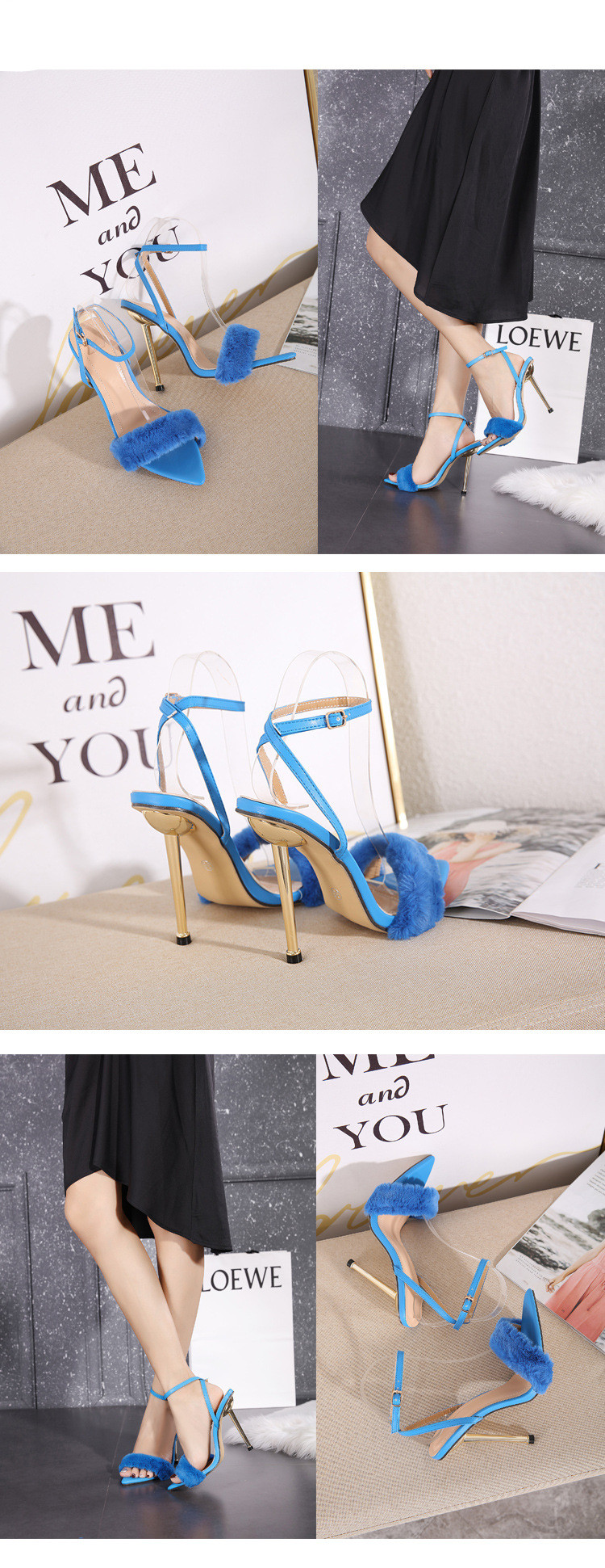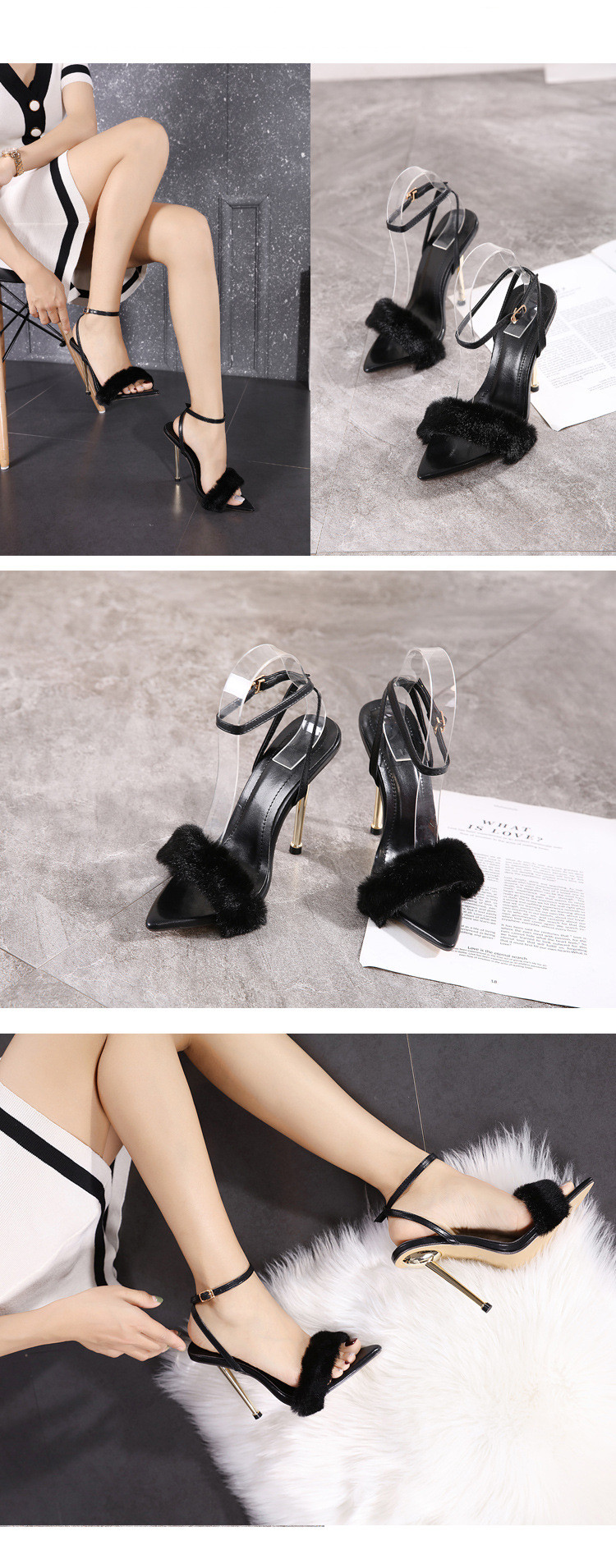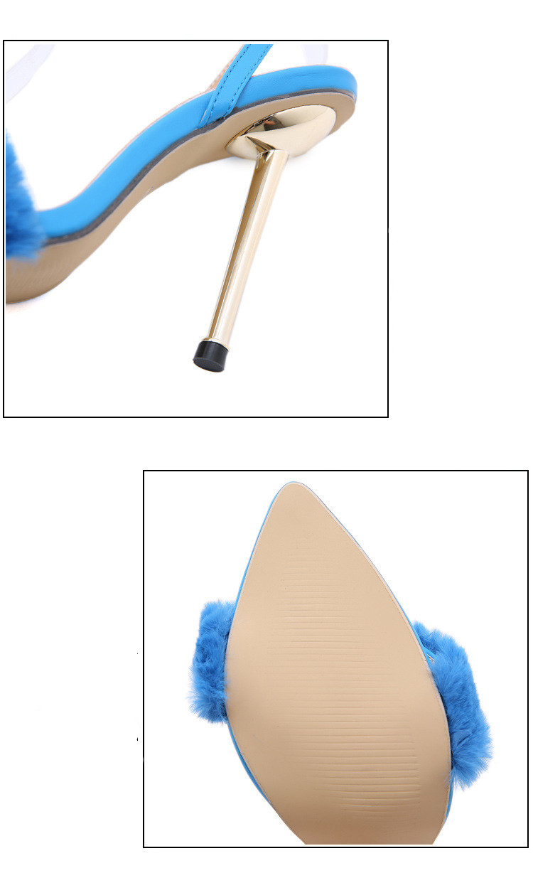 35 To 41 Size Metal High-Heeled Fur Shoes Hollow Pointed Toe Stiletto High-Heeled Sandals