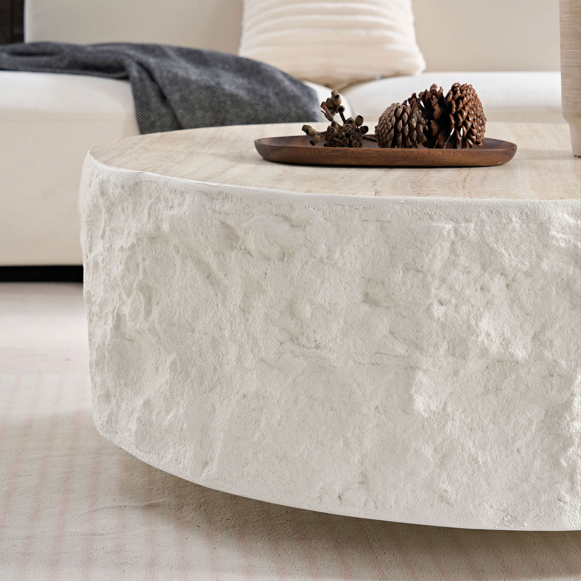 Product Name:35.43''Fiberglass Round Center Coffee Table for Living Room Vintage Table,Imitation Stone Table front of the Sofa,Modern Design Coffee Table for Office,Apartment,No Need Assembly