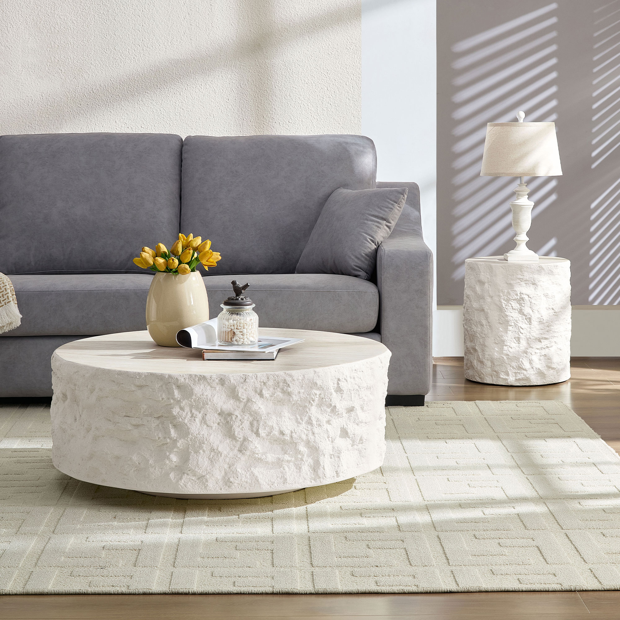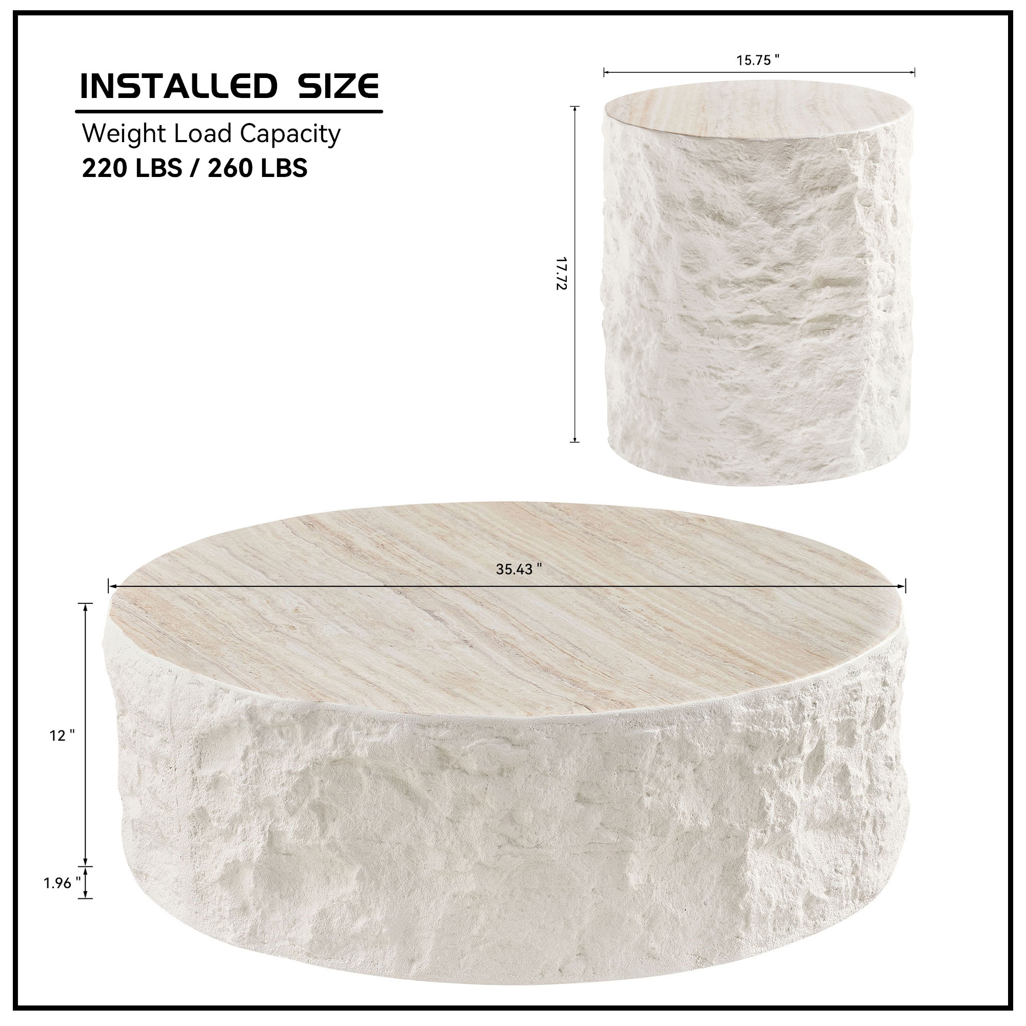 Product Name:35.43''Fiberglass Round Center Coffee Table Set for Living Room Vintage Table,Imitation Stone Table front of the Sofa,Modern Design Coffee Table for Office,Apartment,No Need Assembly