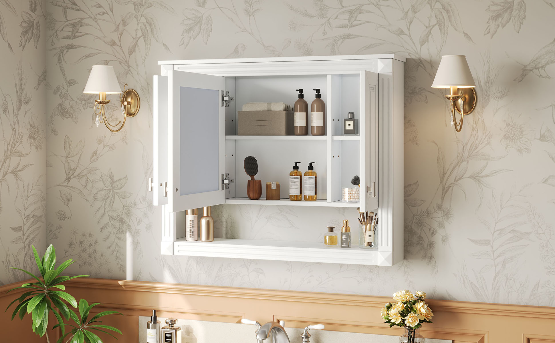 Bathroom Wall Cabinet with Mirror, Wall Mounted Medicine Cabinet with Open Shelf