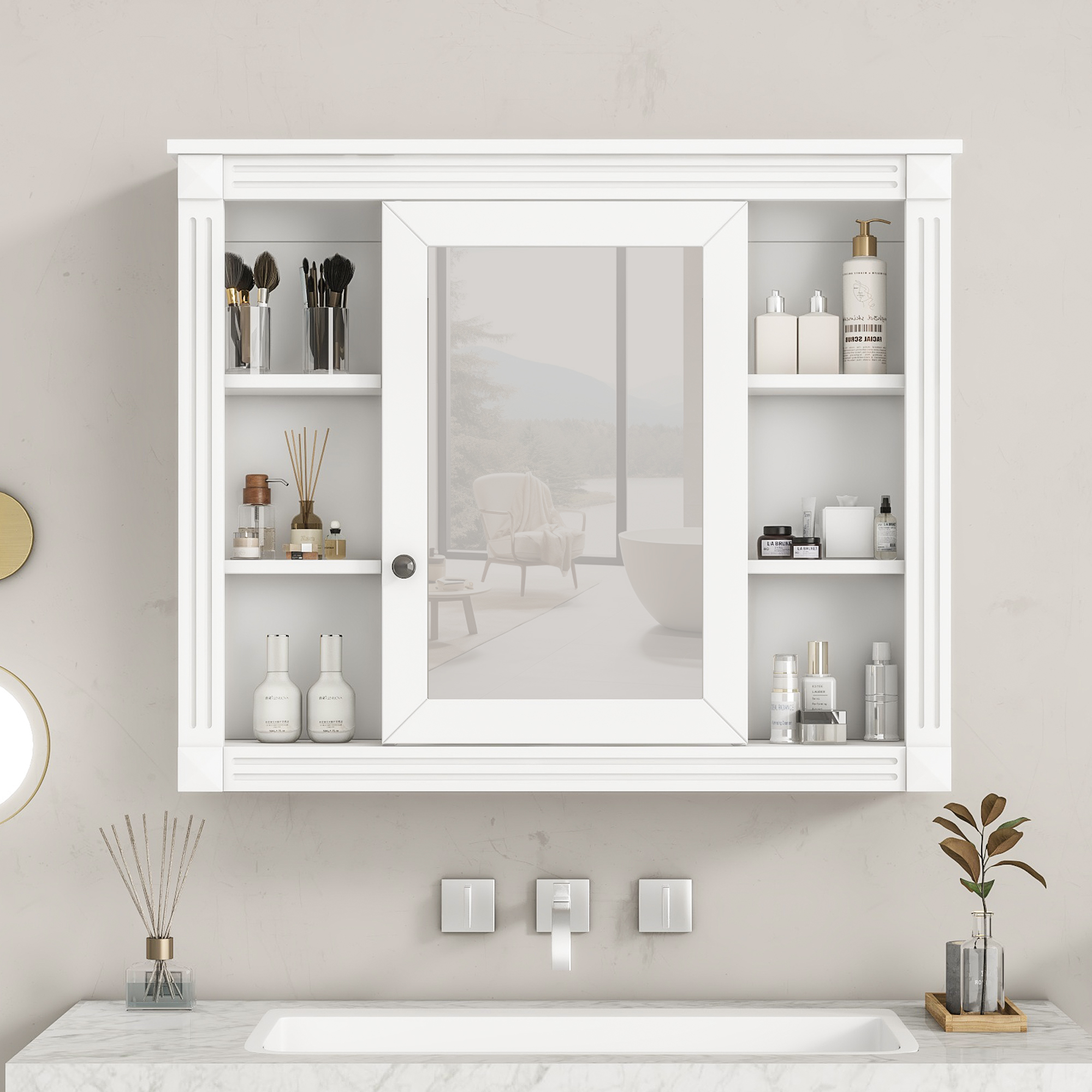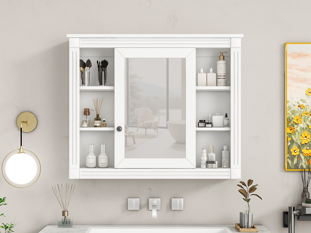 Product Name:35'' x 28'' Wall Mounted Bathroom Storage Cabinet, Medicine Cabinet, Modern Bathroom Wall Cabinet with Mirror, Mirror Cabinet with 6 Open Shelves (Not Include Bathroom Vanity )