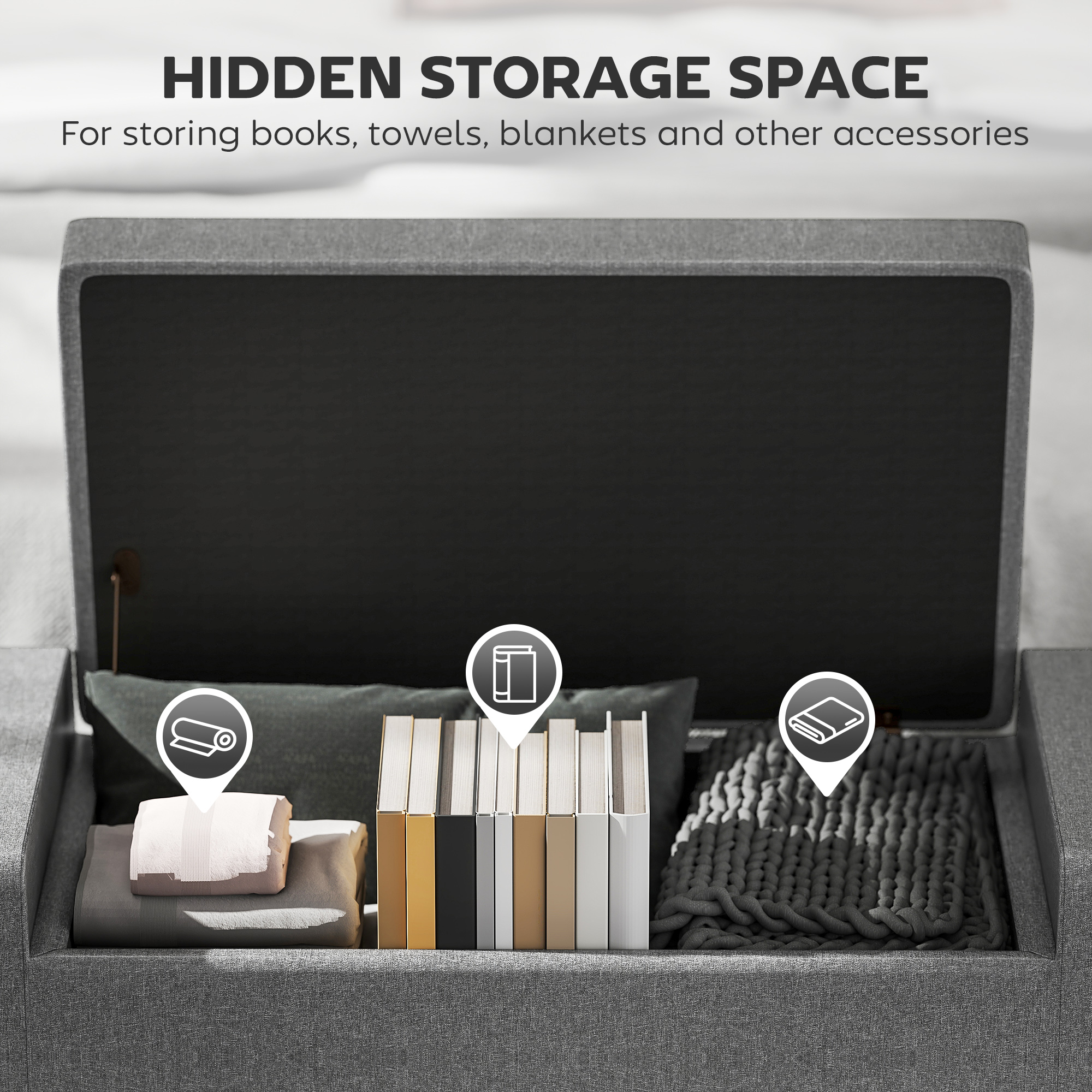 - Versatile and Comfortable: This ottoman with storage can be used as a footstool, bed bench, tabletop, and small storage furniture. High-density foam and linen cover give it extra soft and comfortable for sitting.