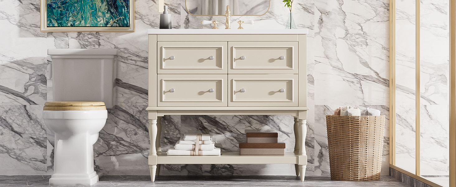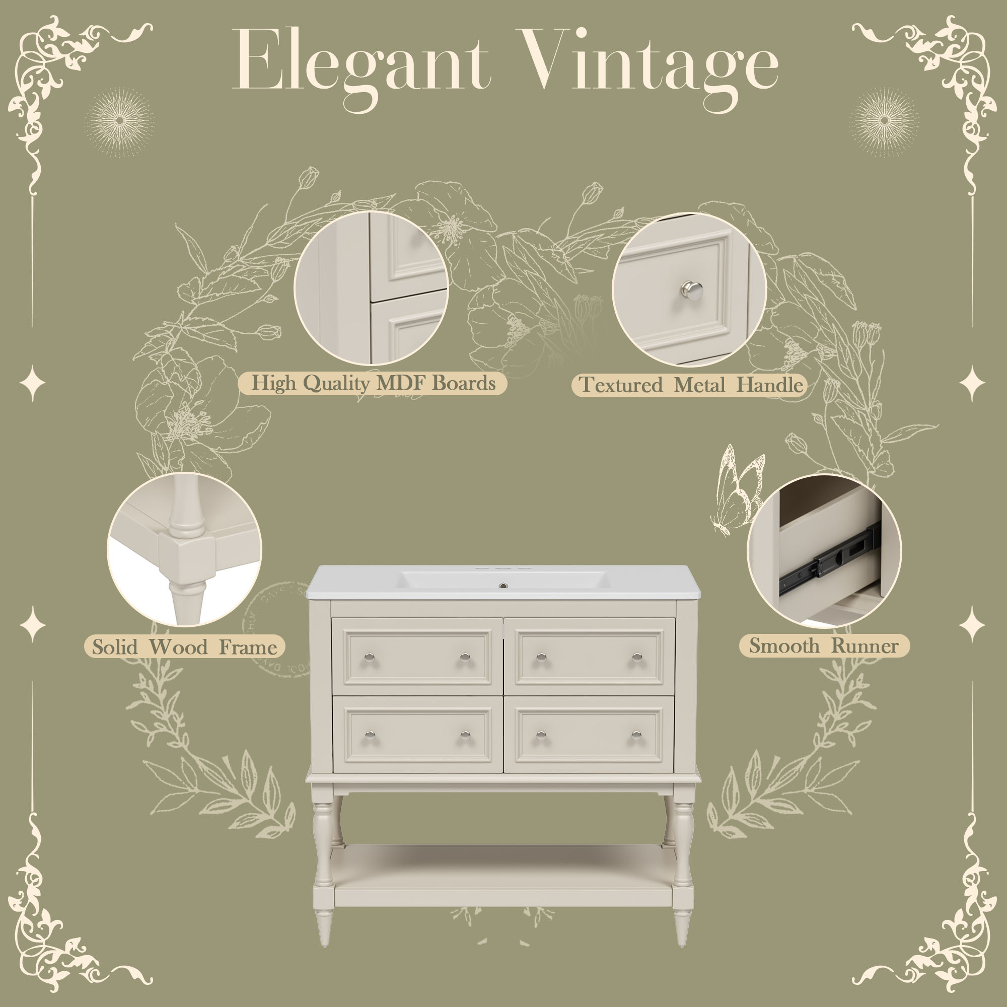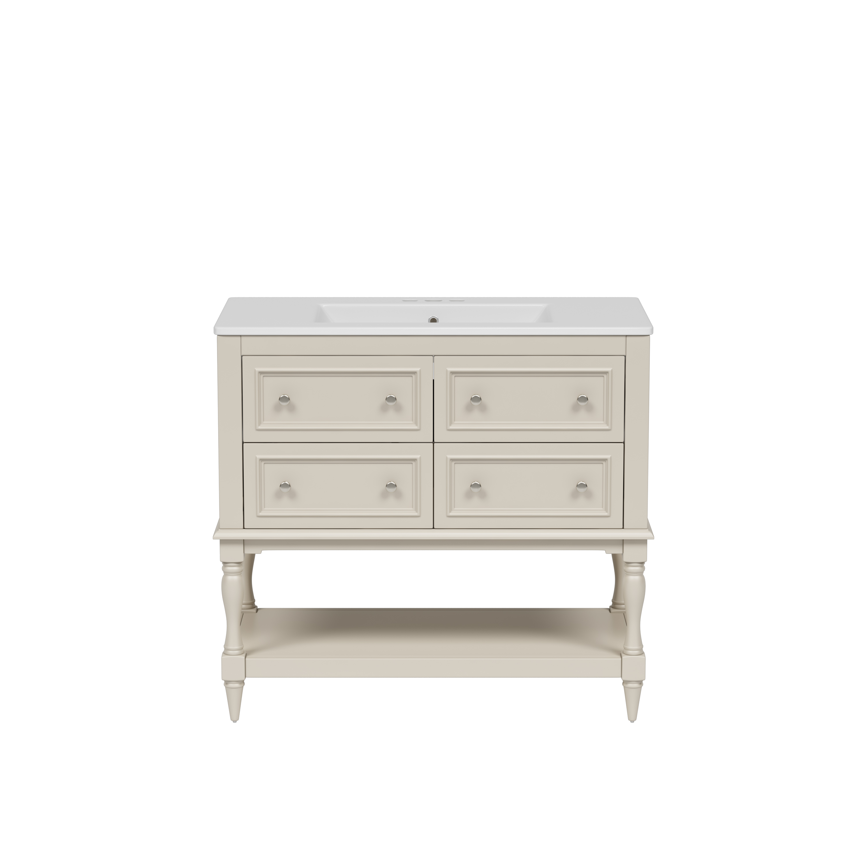 Product Name:36" Bathroom Vanity Cabinet with Sink Combo Set, Undermount Ceramic Sink, Free Standing Vanity Set with 4 Drawers, Solid Wood Frame Bathroom Cabinet, Beige