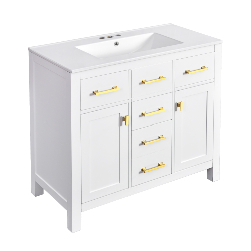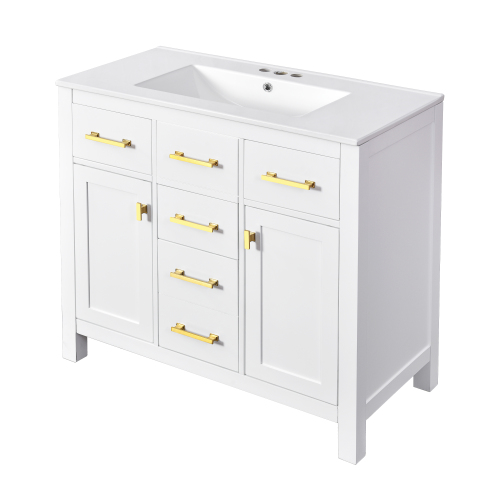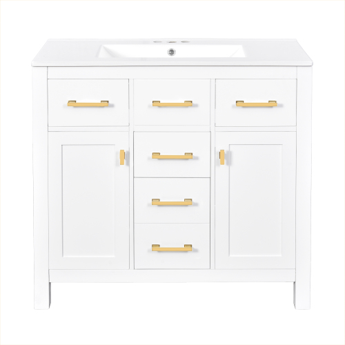 Product Name:36'' Bathroom Vanity with Ceramic Sink Combo Set,Modern Freestanding Single Bathroom Cabinet with 4 Drawers & 2 Cabinets,Storage Cabinet for Bathroom, Solid Wood Frame Vanity Set, White