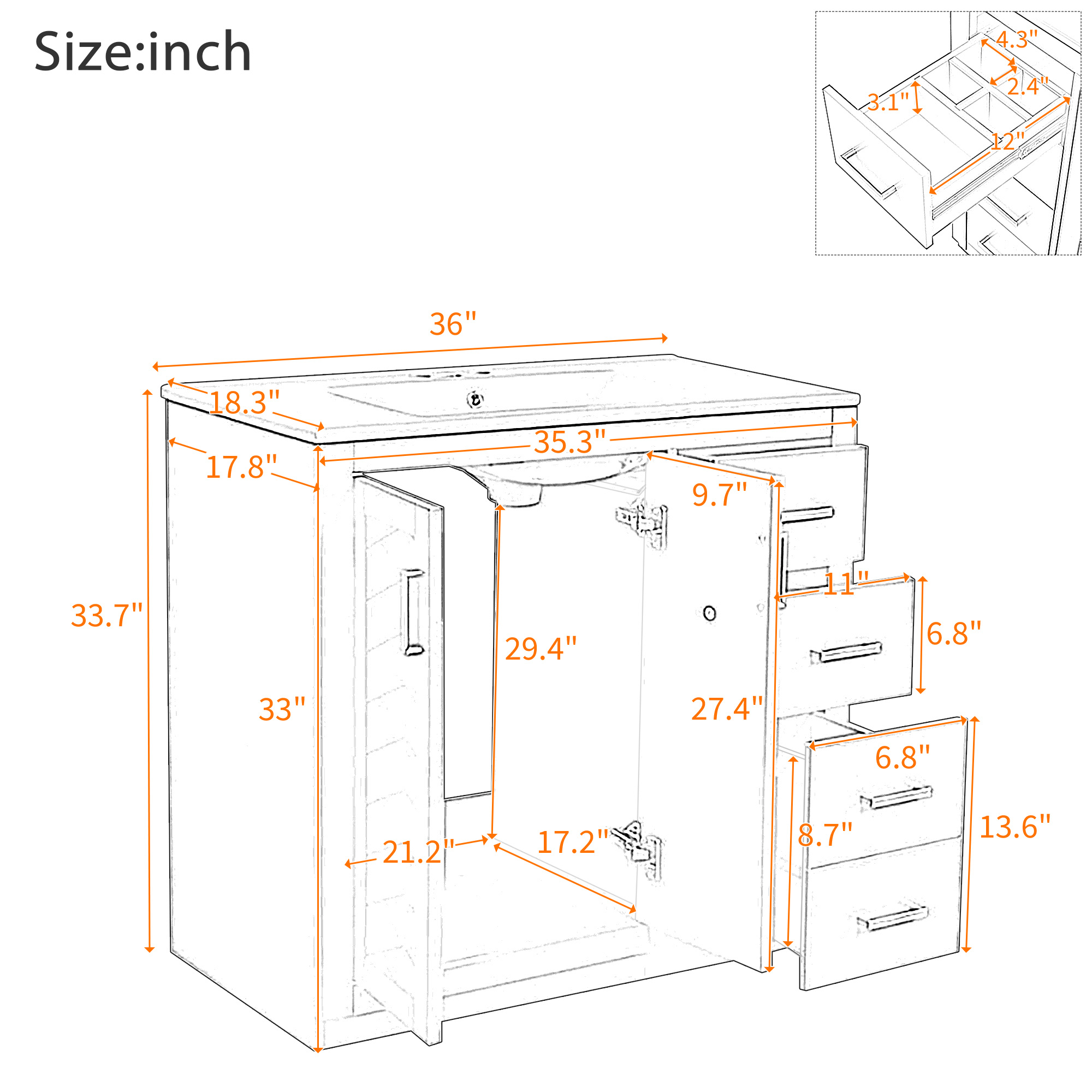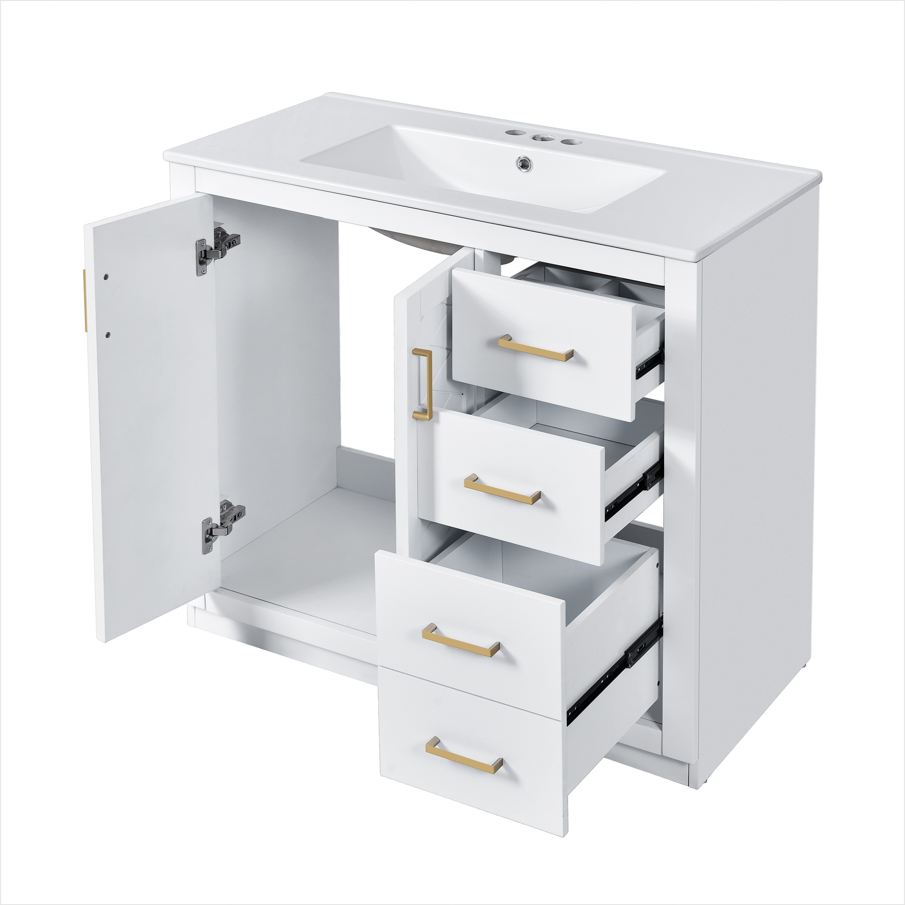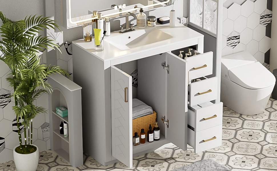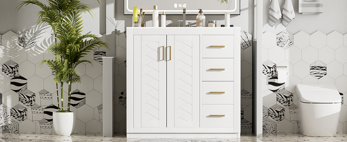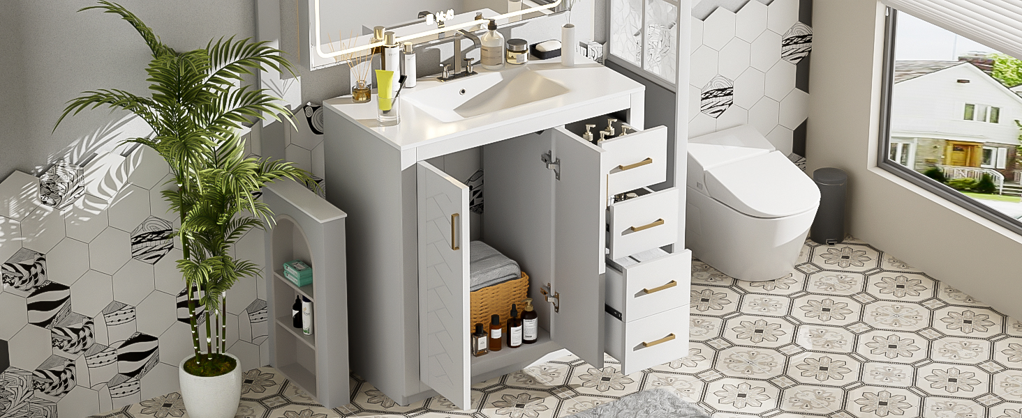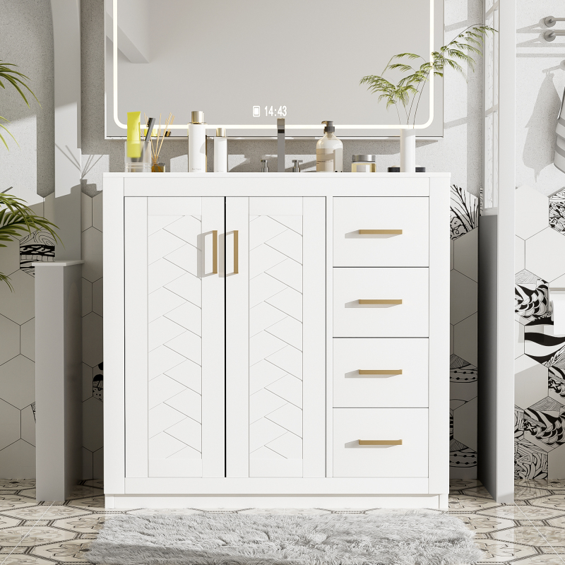 Product Name:36'' Bathroom Vanity with Ceramic Sink Combo, Solid Wood Frame Bathroom Storage Cabinet, Freestanding Vanity Set with 3 Drawers& Soft Closing Doors