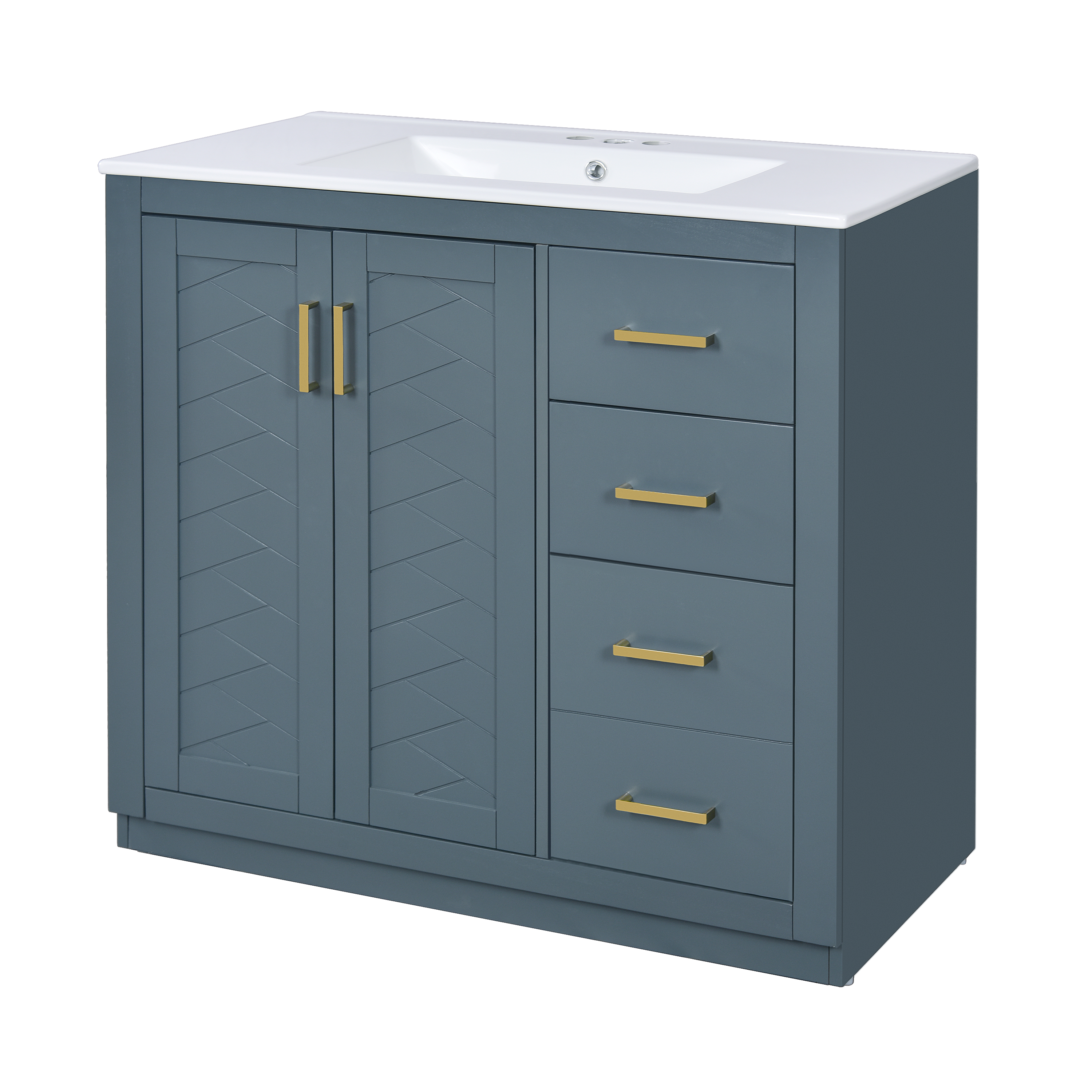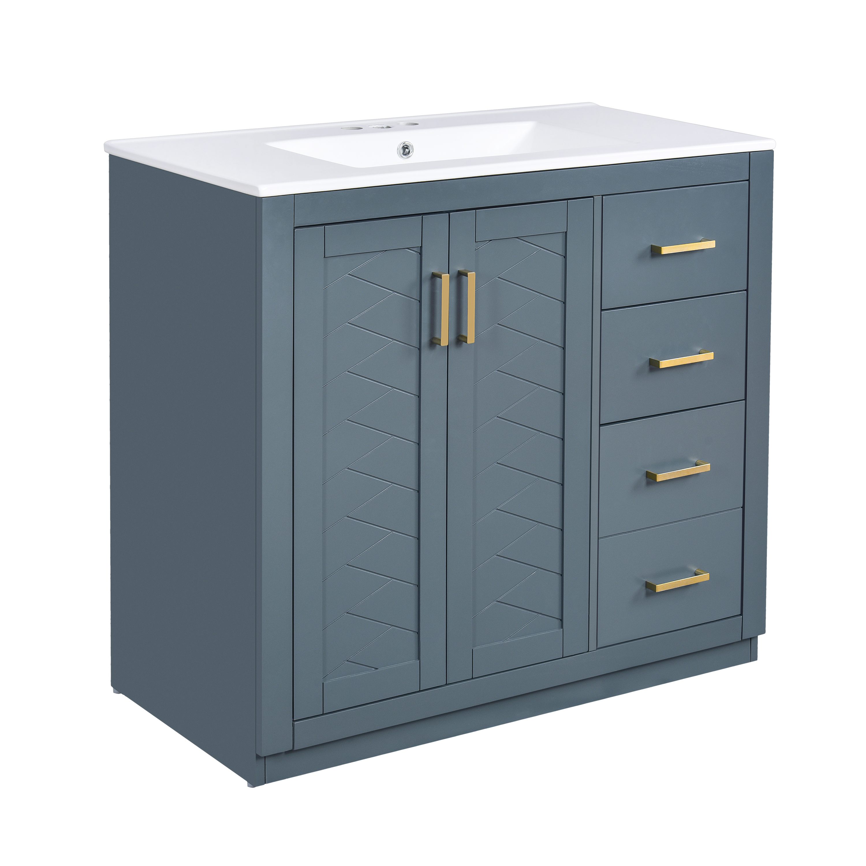 36'' Bathroom Vanity With Ceramic Sink Combo, Solid Wood Frame Bathroom Storage Cabinet, Freestanding Vanity Set With 3 Drawers& Soft Closing Doors