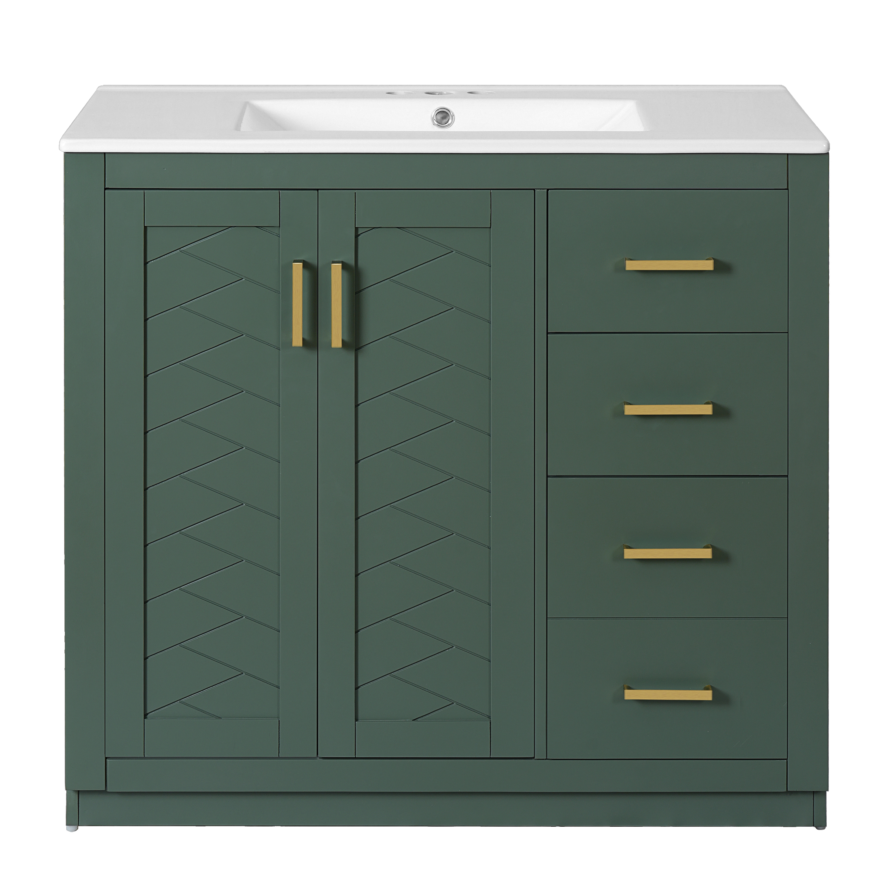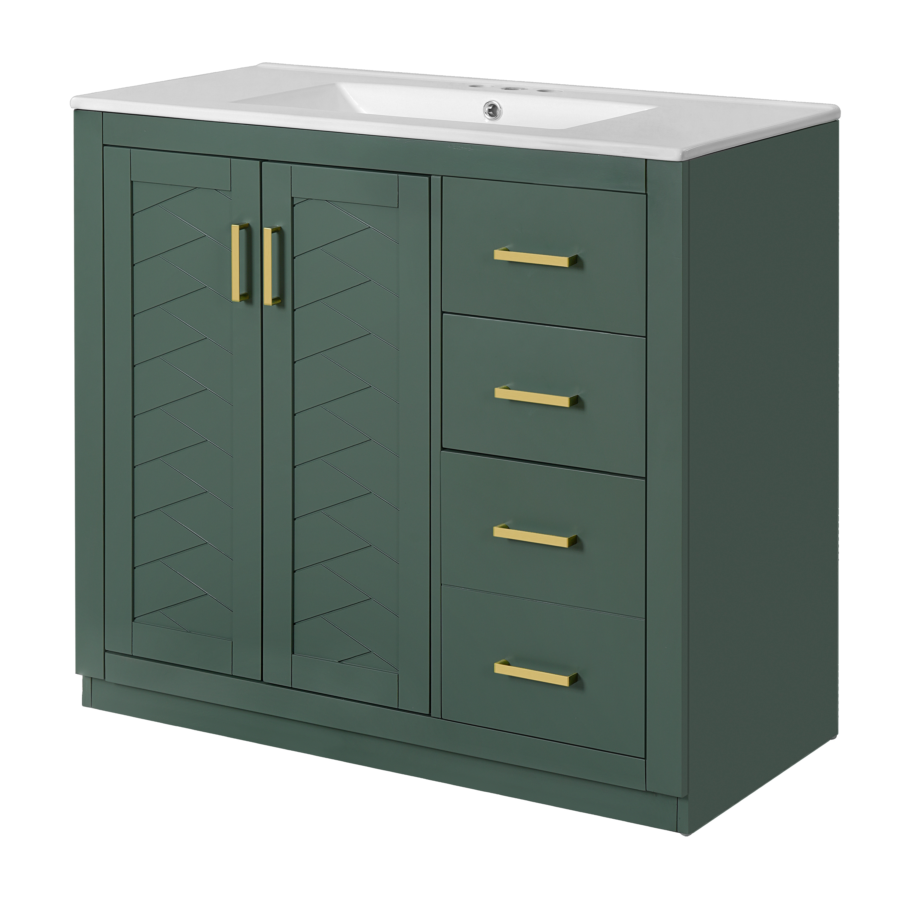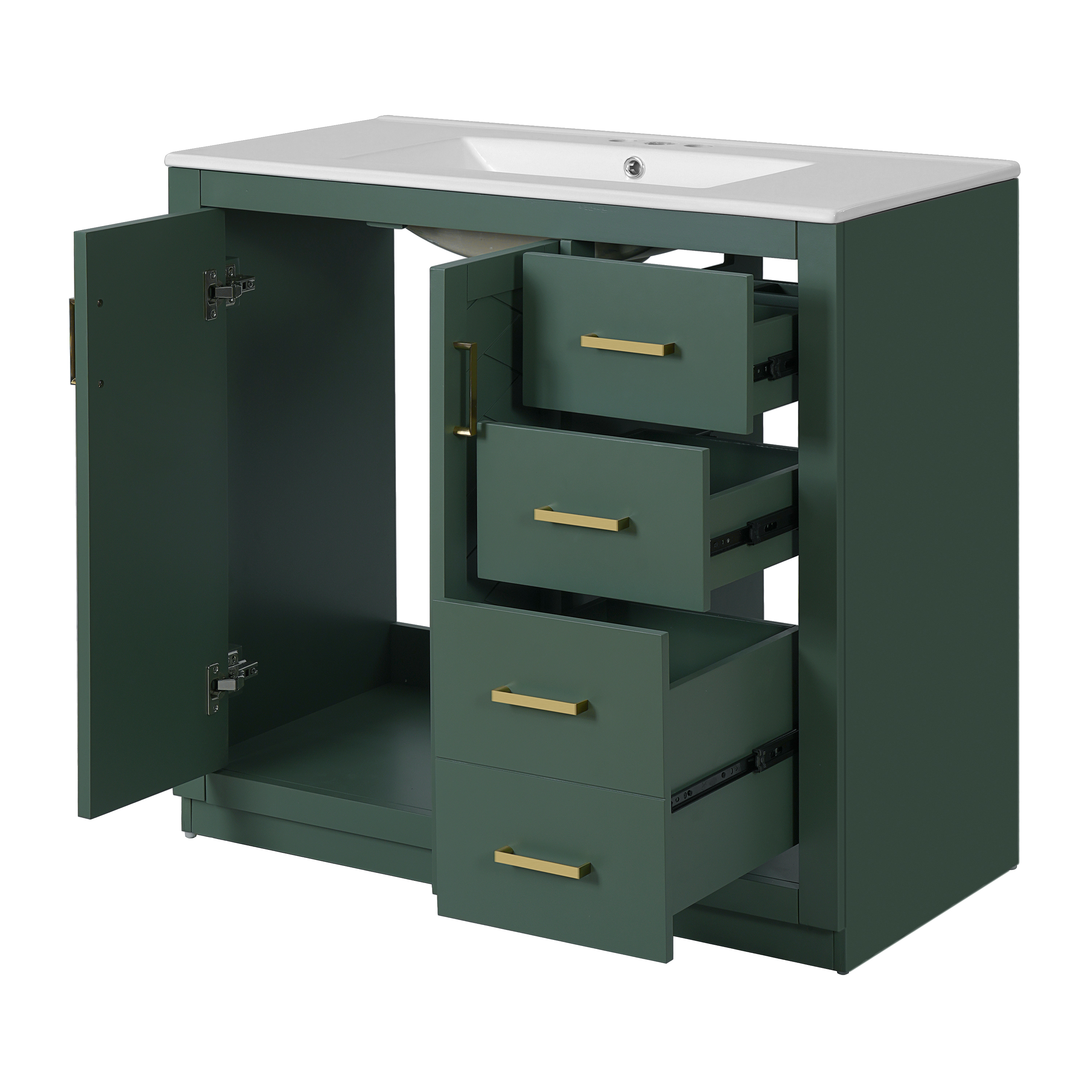 36'' Bathroom Vanity With Ceramic Sink Combo, Solid Wood Frame Bathroom Storage Cabinet, Freestanding Vanity Set With 3 Drawers& Soft Closing Doors