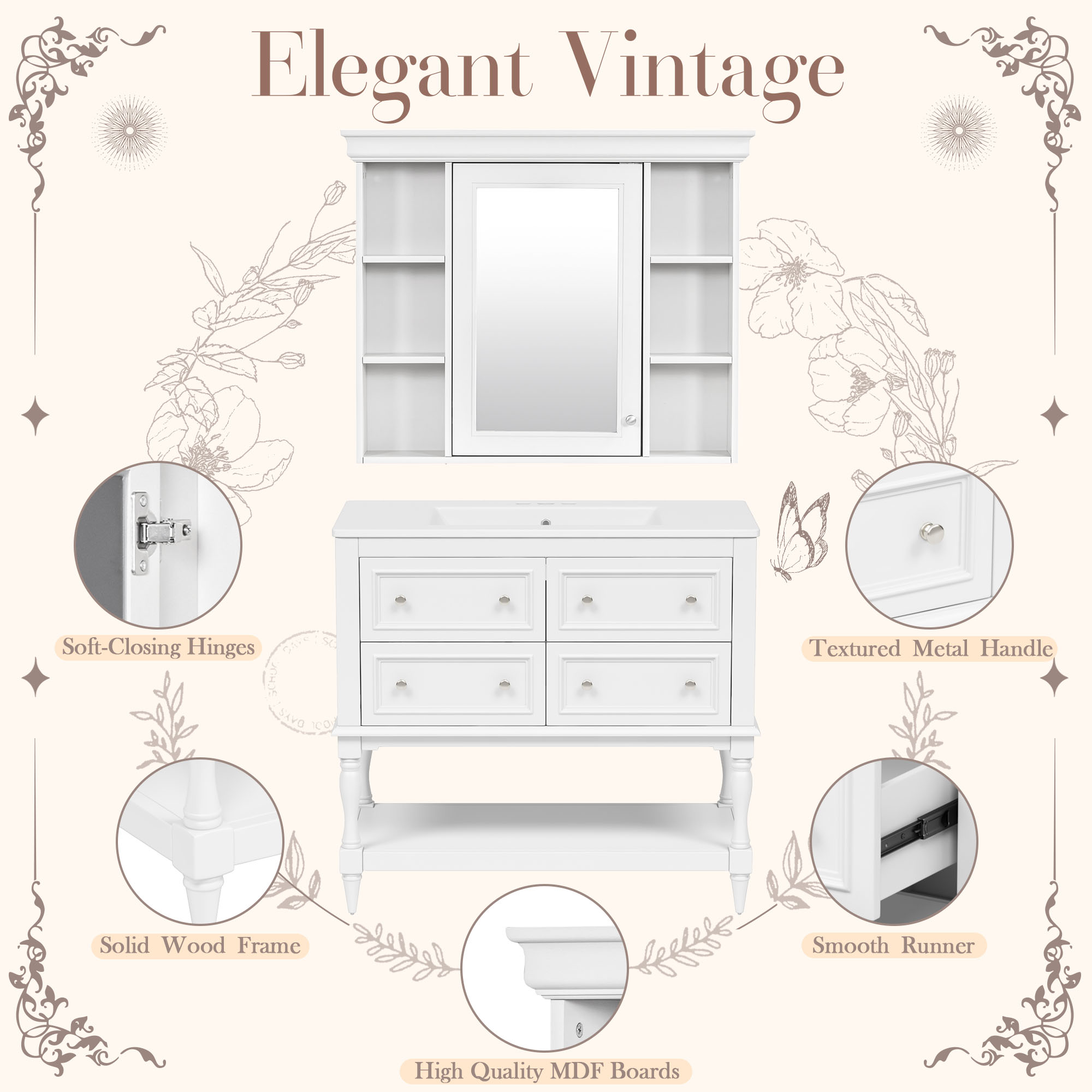 Product Name:36'' Bathroom Vanity with Medicine Cabinet, Modern Mirror Cabinet with Adjustable Shelf, Bathroom Storage Cabinet with 4 Drawers, Solid Wood Frame Bathroom Storage Cabinet