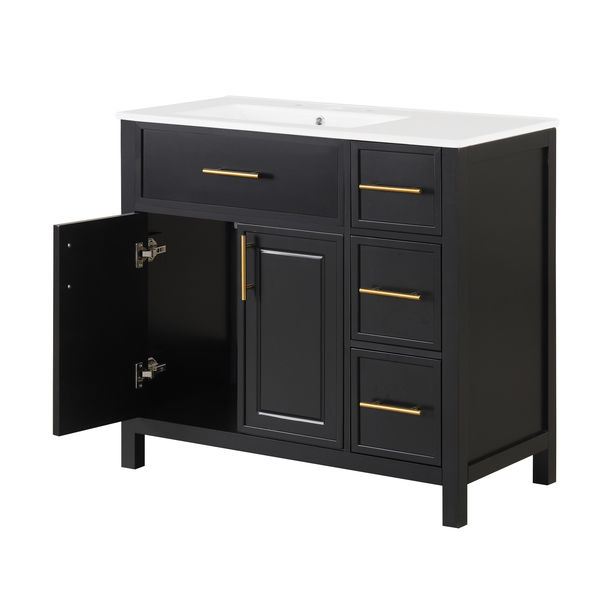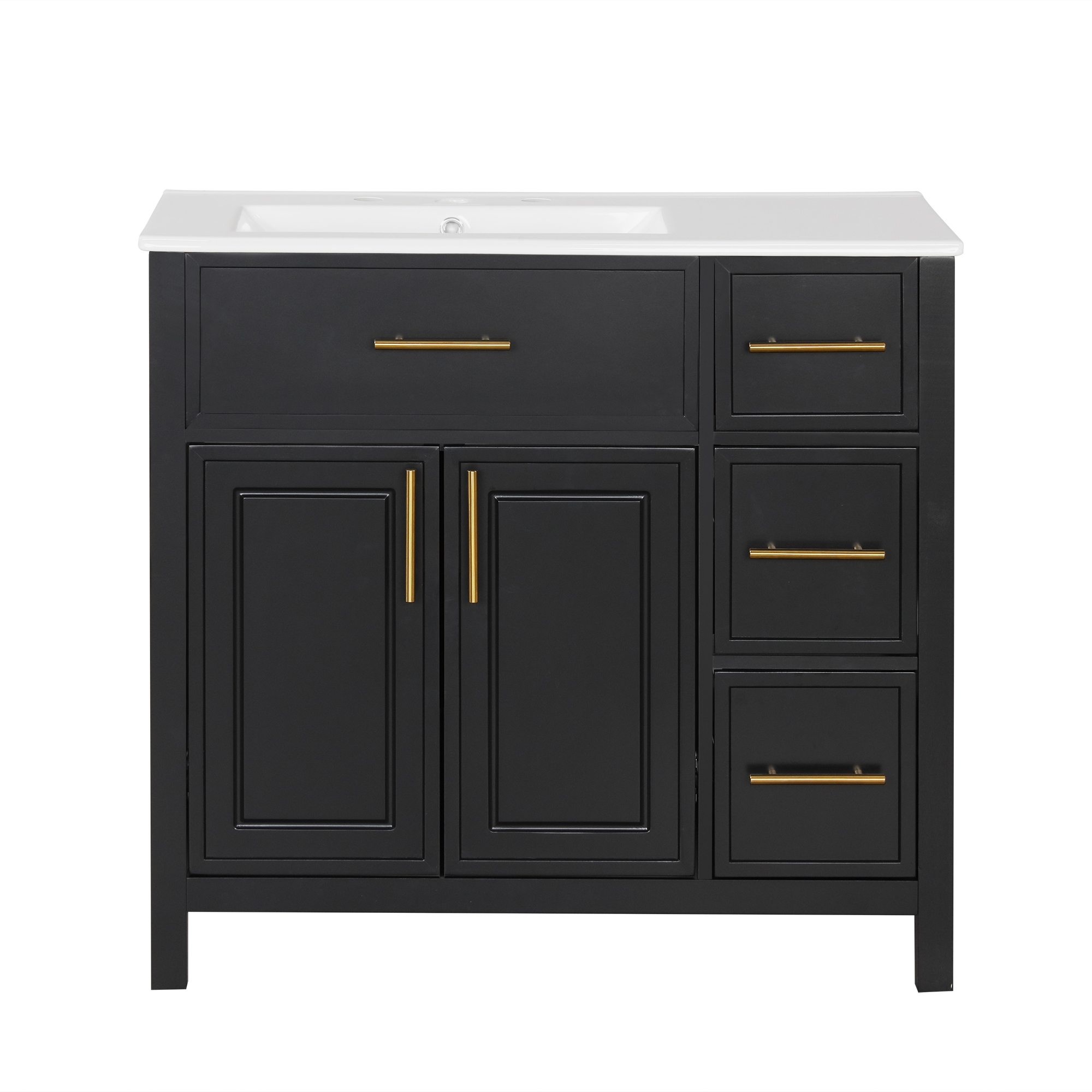 Product Name:36" Bathroom Vanity with Sink Top, Bathroom Vanity Cabinet with Two Doors and Three Drawers, Solid Wood , MDF Boards ,One Package, Black(Old SKU:N725P198316B)