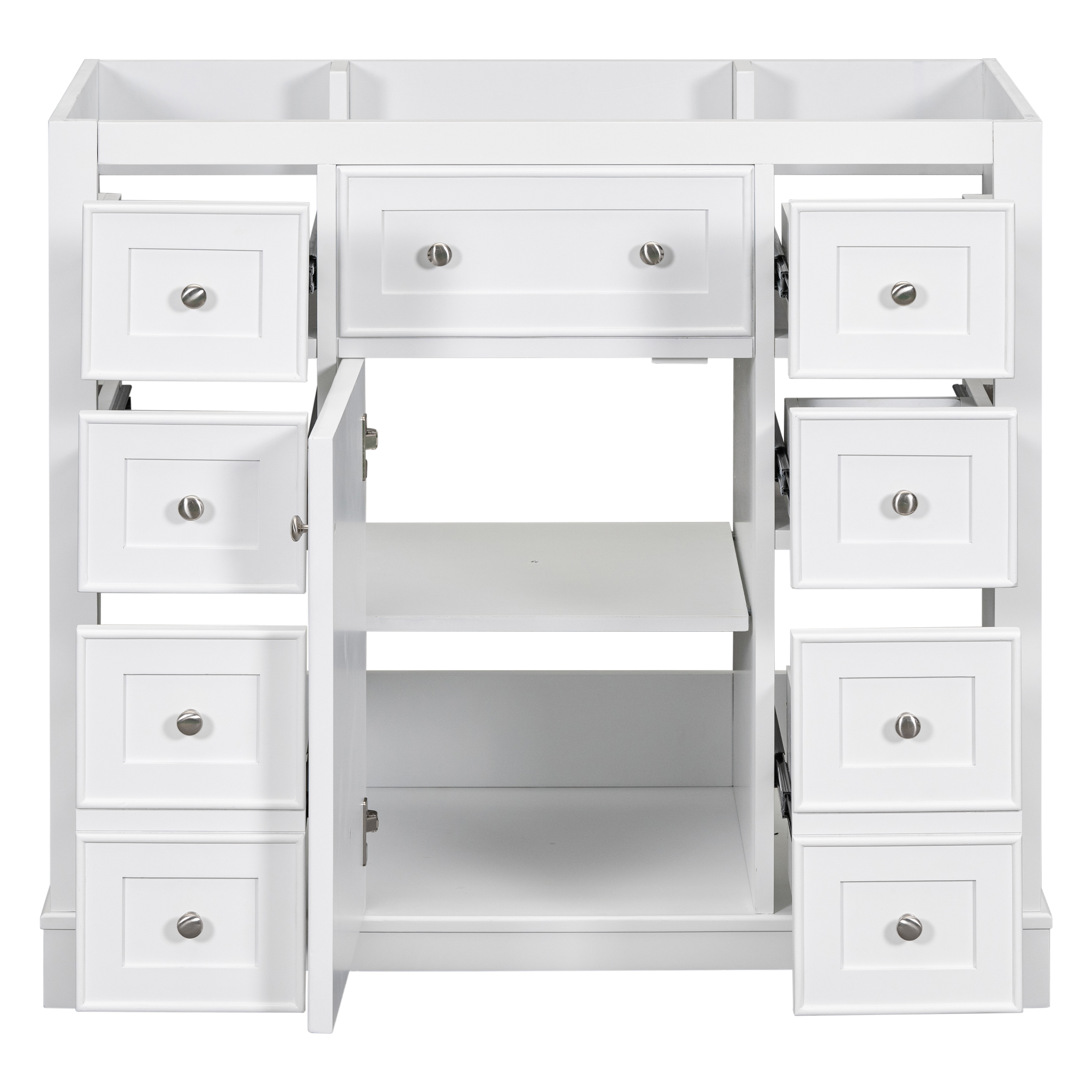 Product Name:36" Bathroom Vanity without Sink, Cabinet Base Only, One Cabinet and Six Drawers, White