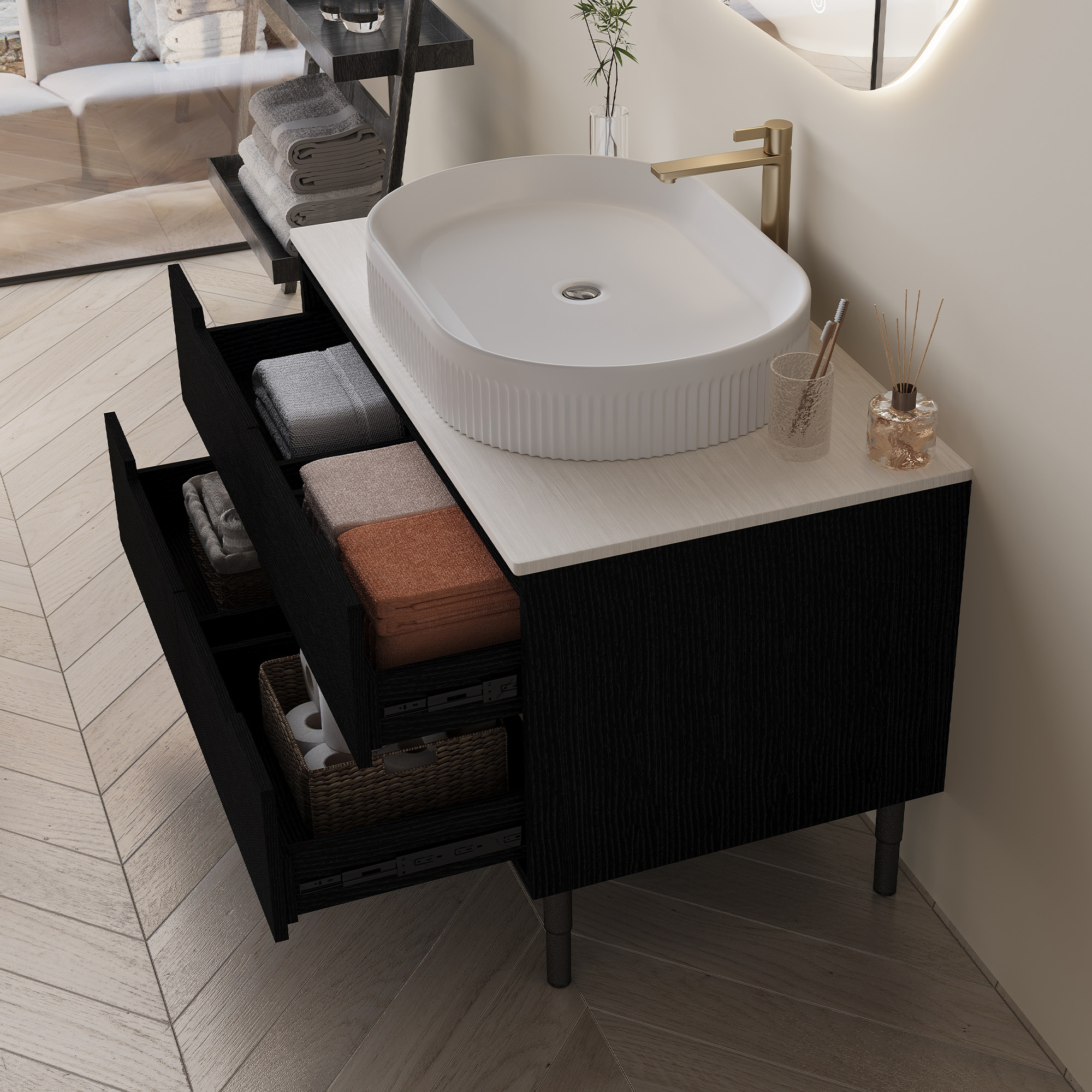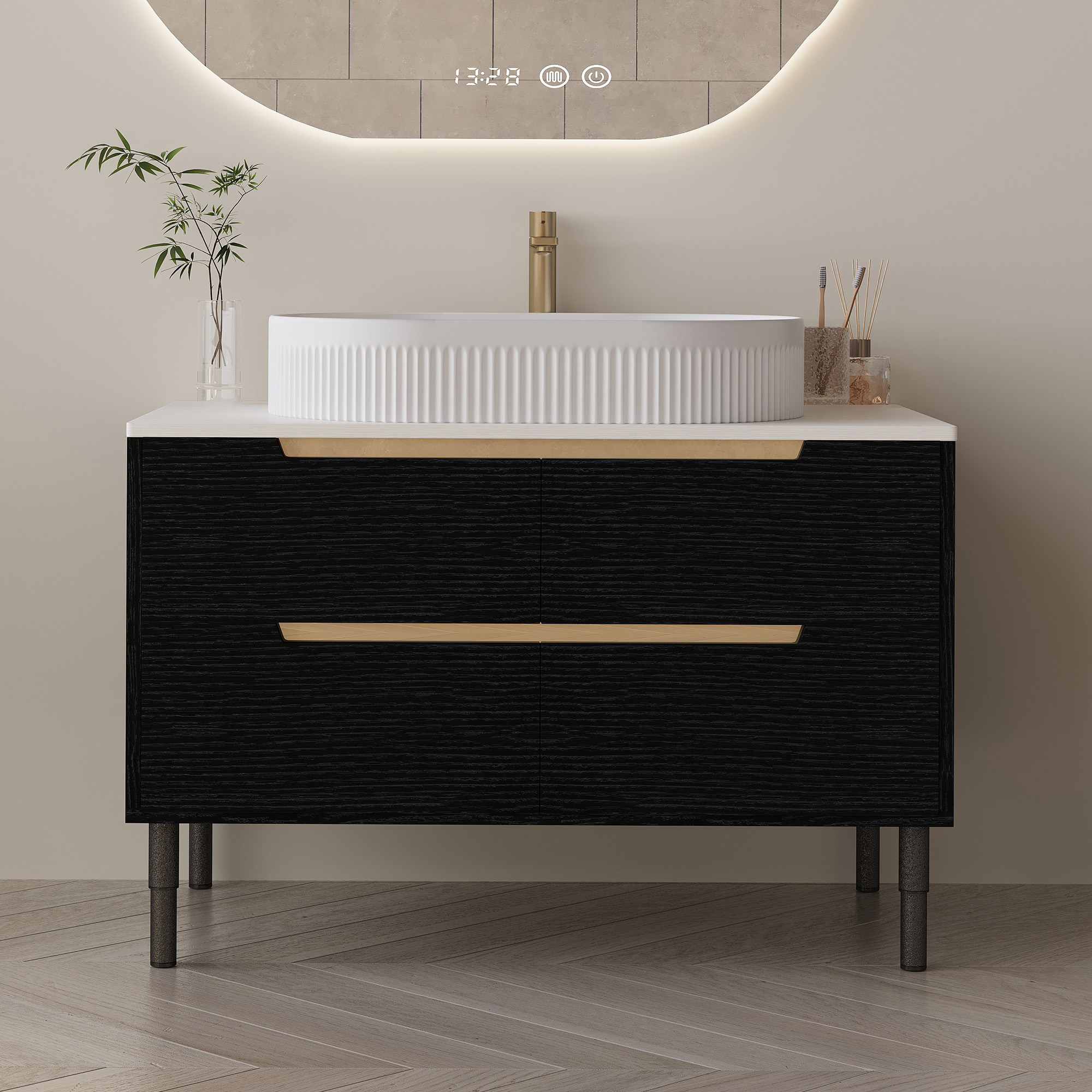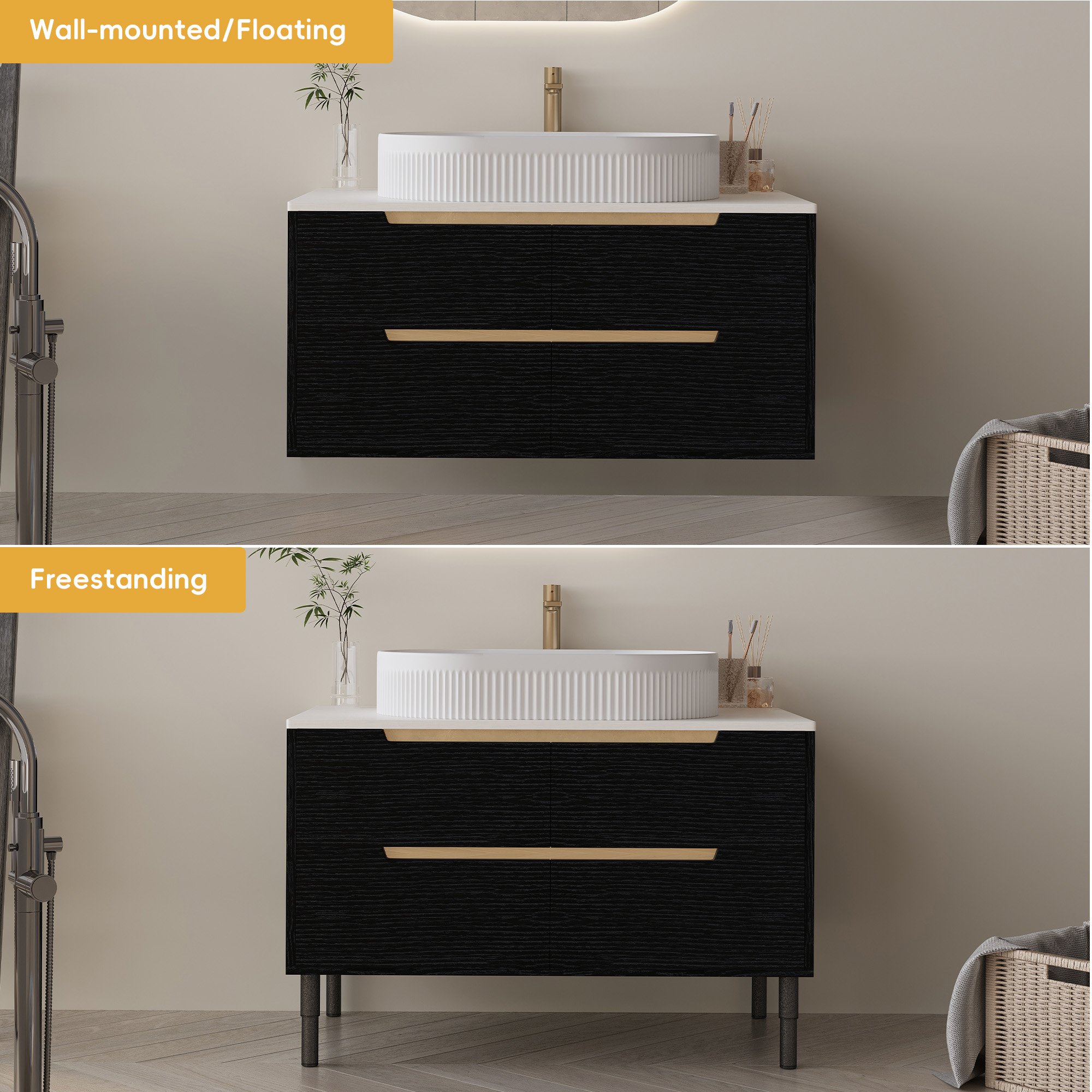 • 2-in-1 Installation: Floating or FreestandingEnjoy unmatched flexibility to create your dream bathroom. Install it as a sleek floating bathroom vanity for a modern look or as a stable freestanding bathroom vanity for classic appeal—perfect for any layout.