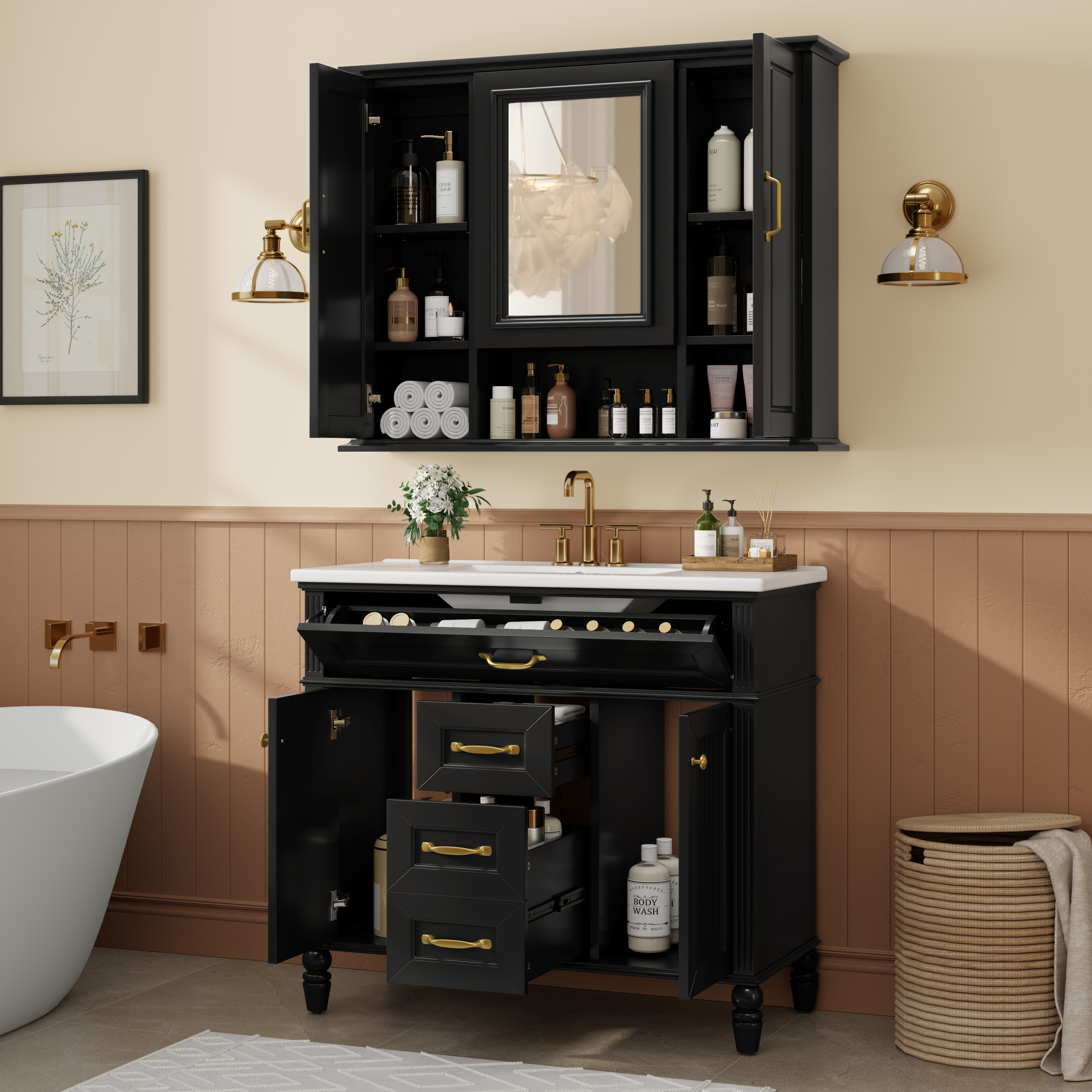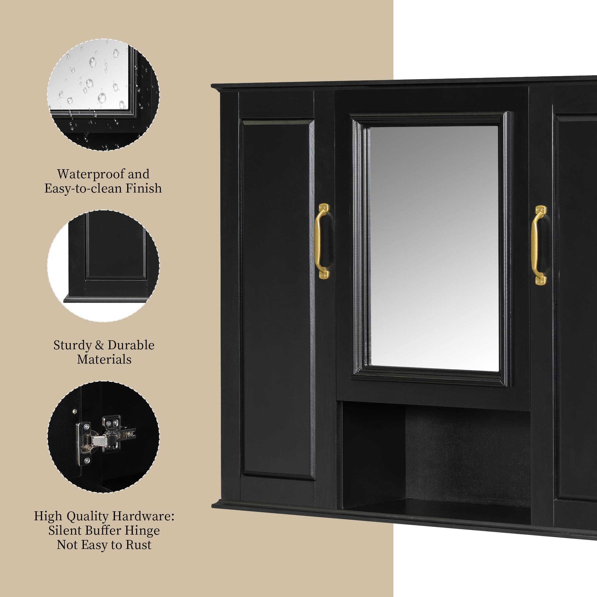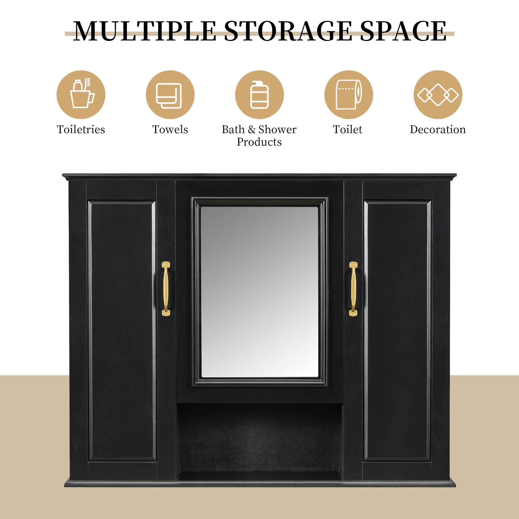 Product Name:36'' Medicine Cabinet, Wall Mounted Bathroom Storage Cabinet, Modern Bathroom Wall Cabinet with Mirror, Mirror Cabinet with 3 Doors (Not Include Bathroom Vanity )