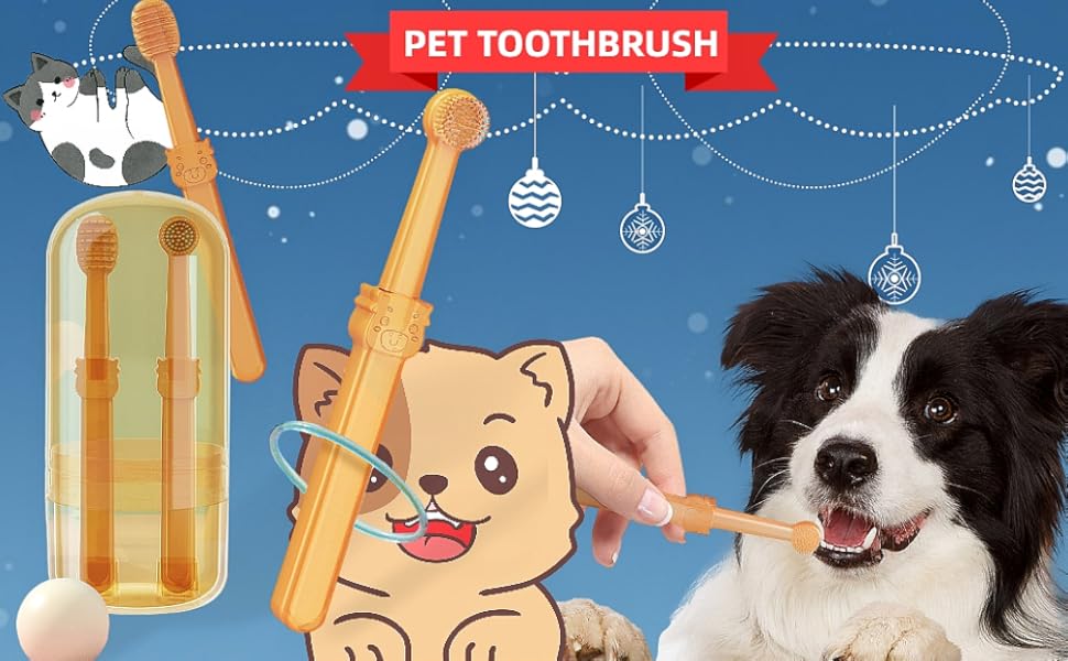 360 Angle Dog Toothbrush With Tongue Cleaning Brush, Silicone Pet Toothbrush Kit For Cats And Dogs With Storage Cup - Dental Care For Small Animals