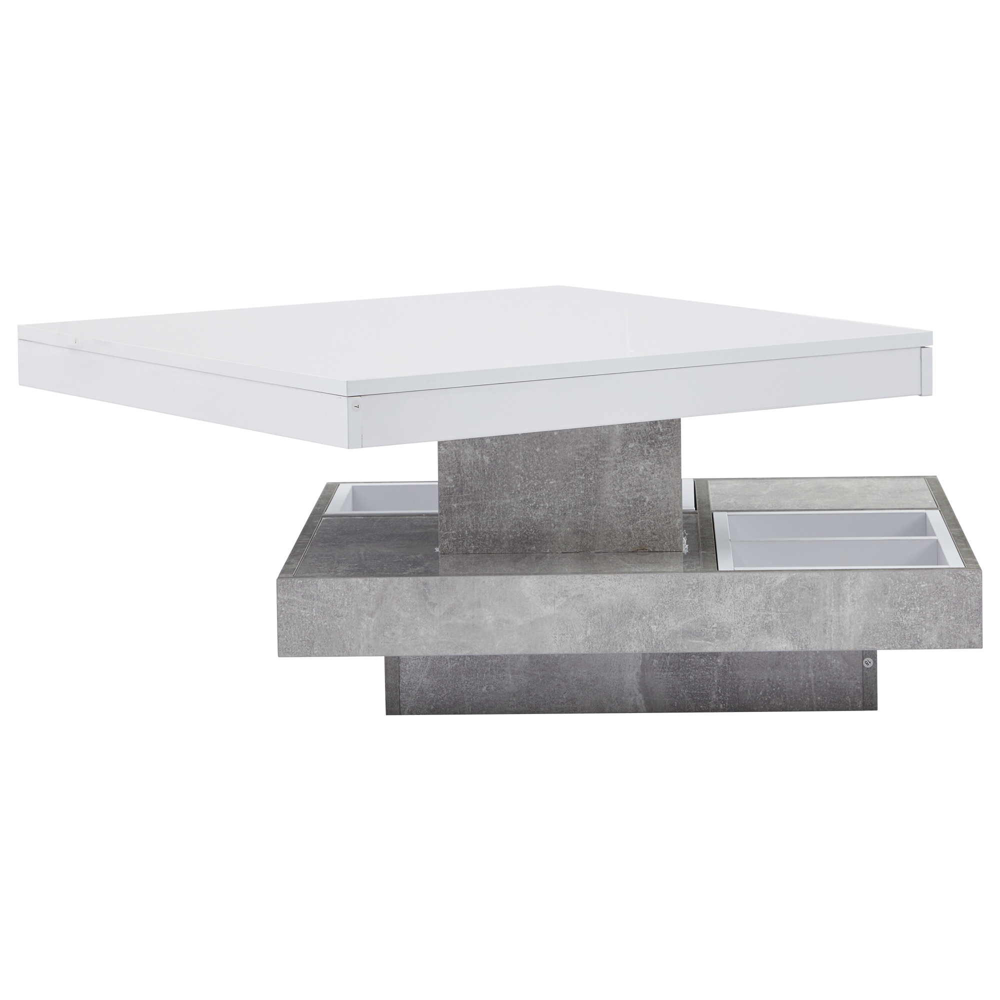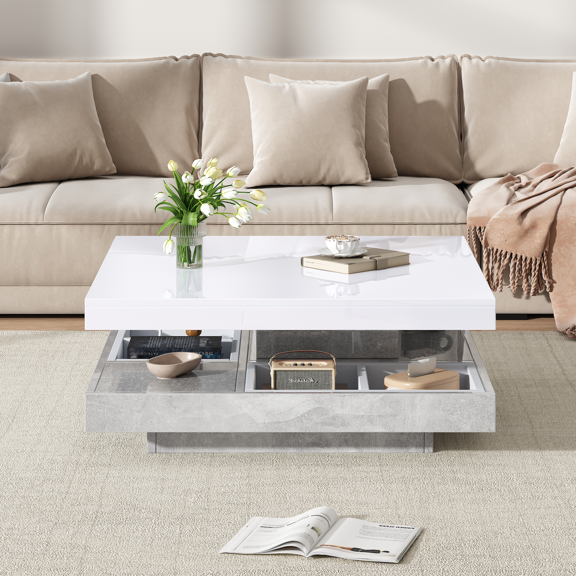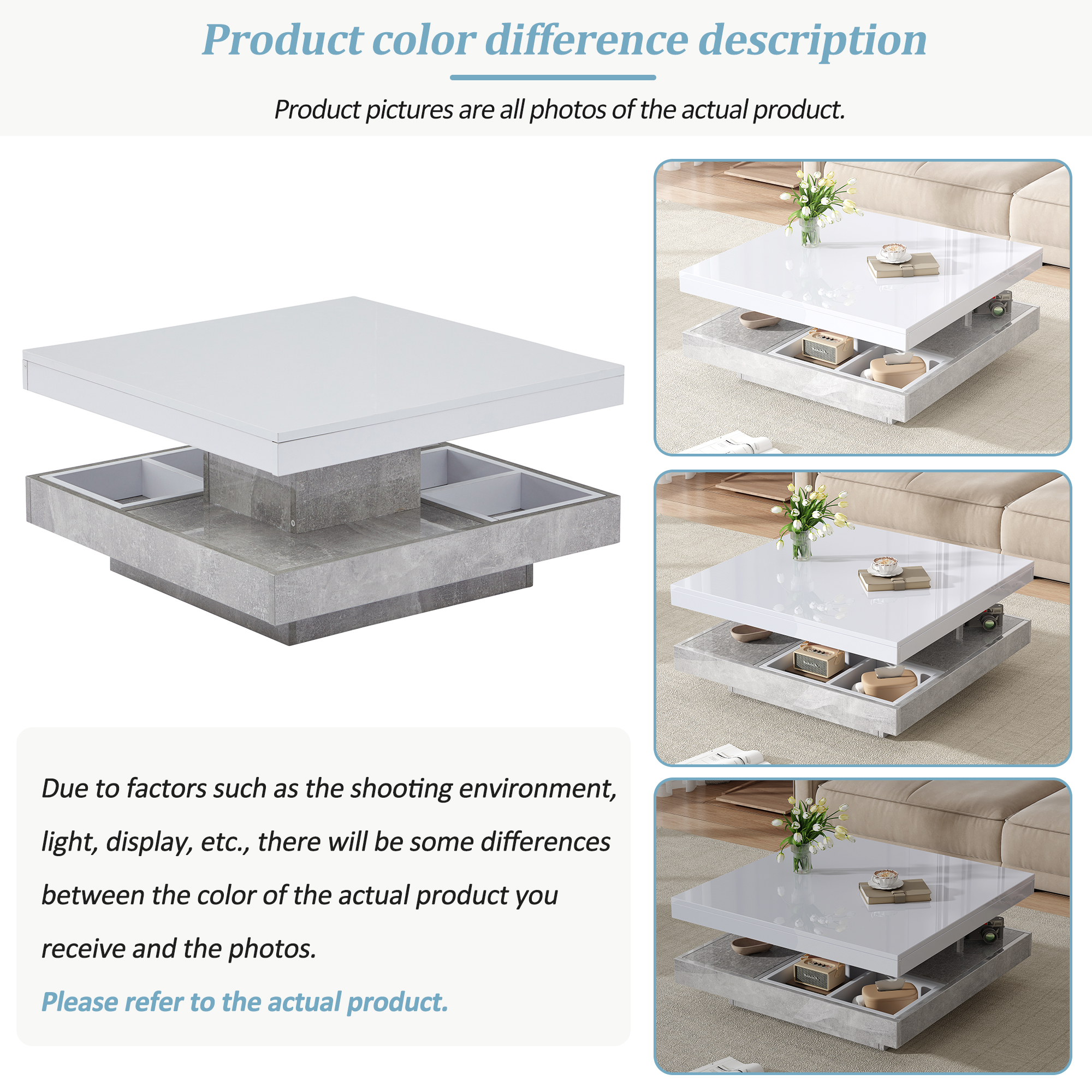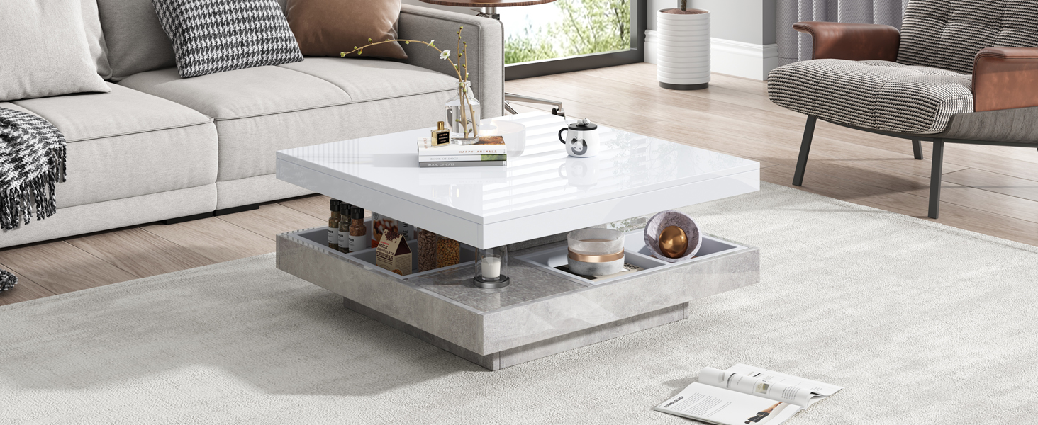 Product Name:360° rotating coffee table, fully functional living room storage table, high-gloss tabletop with storage compartments, white living room tabletop, marble-patterned particleboard