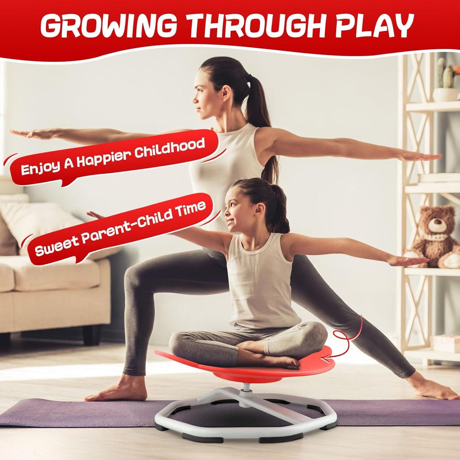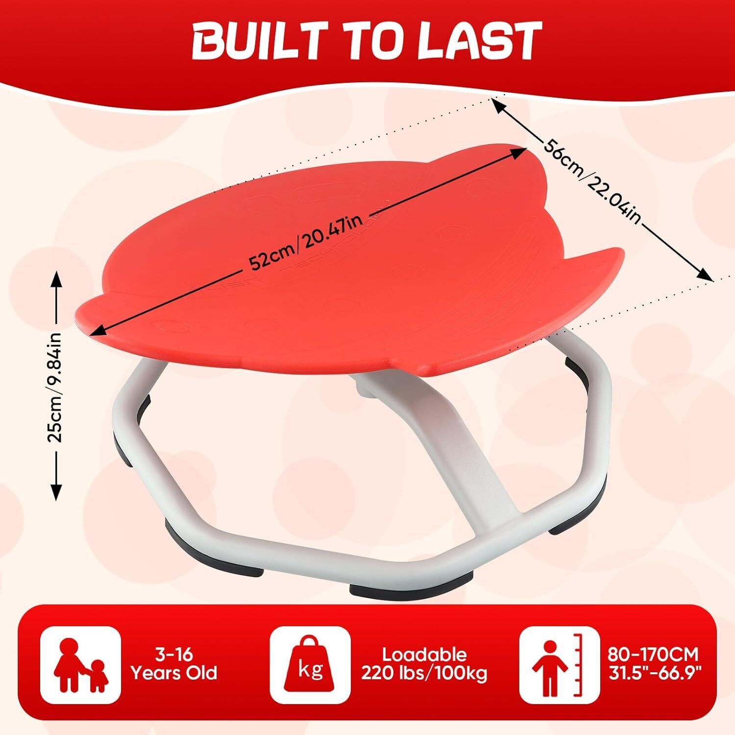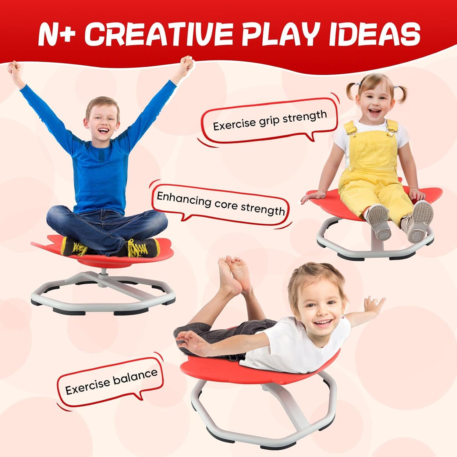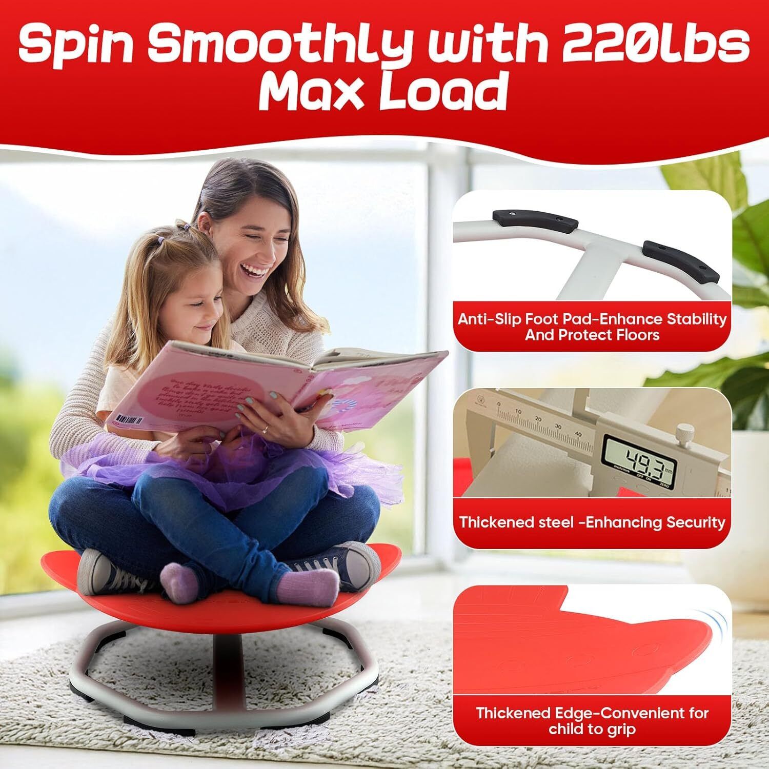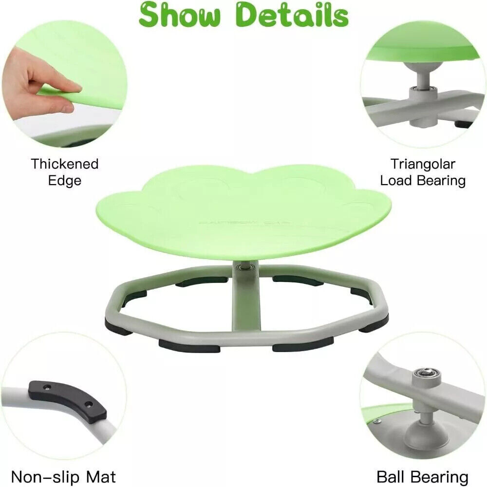 ã360° All-Round Smooth PolishingãUpgraded with high-precision ball bearing and torque structure that conforms to inertial dynamics, this spinning seat allowing kids to fully control the rotation easier and smoother. Let your child sets the paceâspinning slowly relaxes; spinning quickly develops balance.