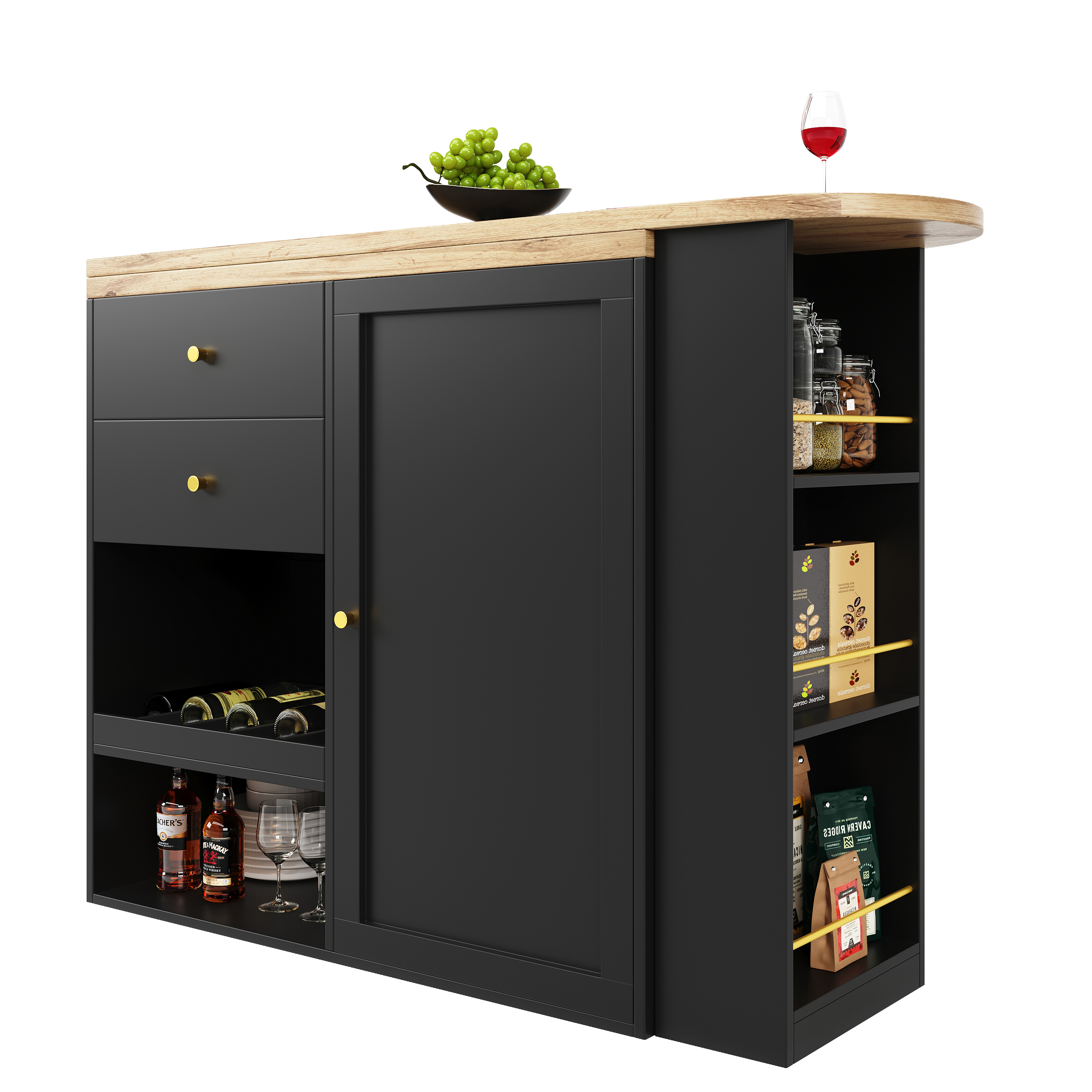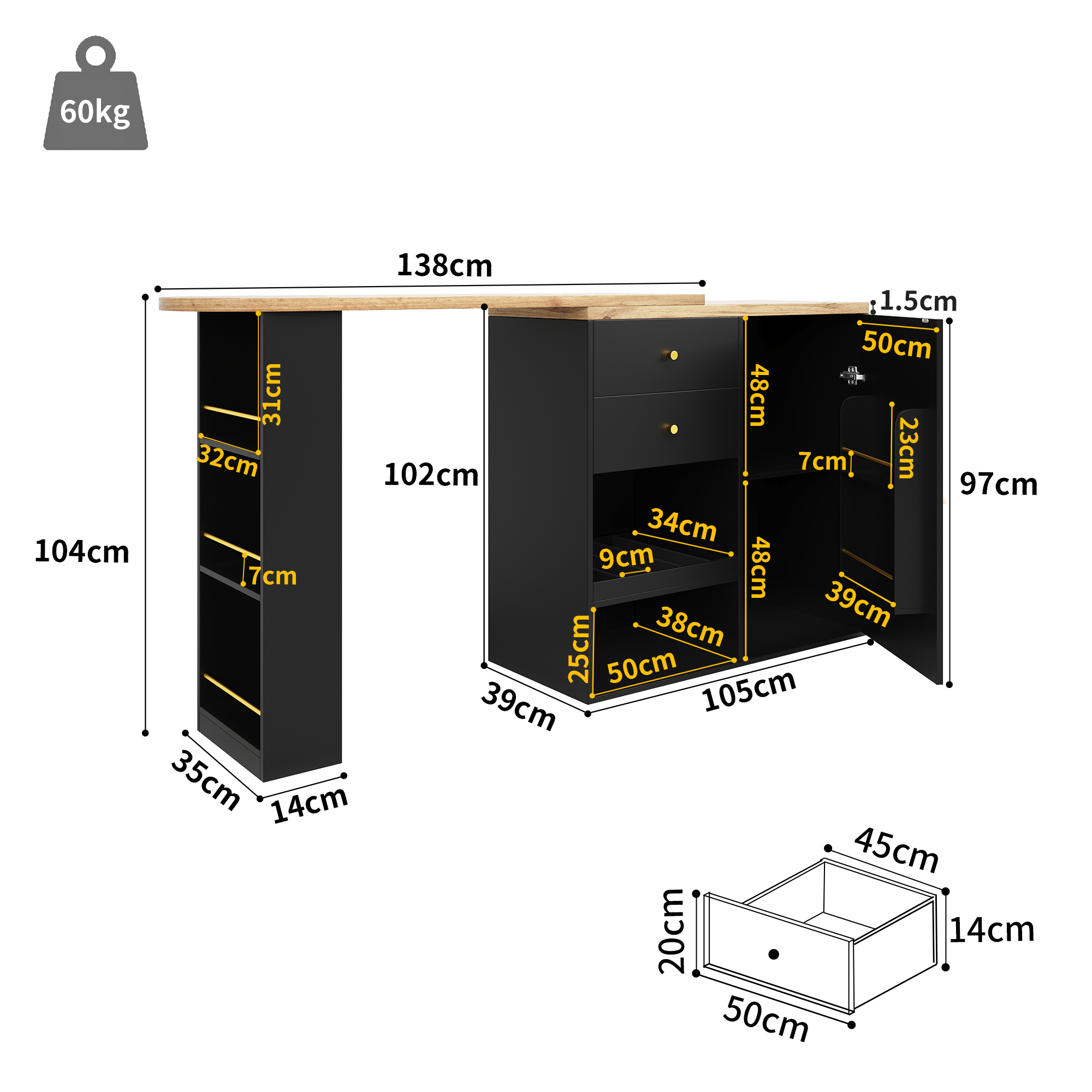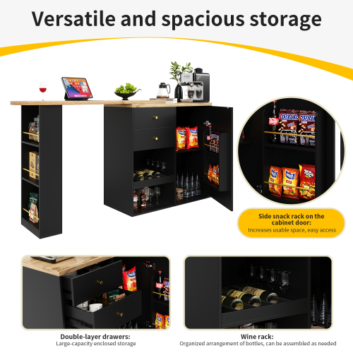 Product Name:360° Swivelling Bar Table (105 x 39 x 102 cm), with 2 Drawers and Sliding Door Cabinet, 3 Levels of Open Storage Space, Suitable for Dining Room/Study/Living Room etc.