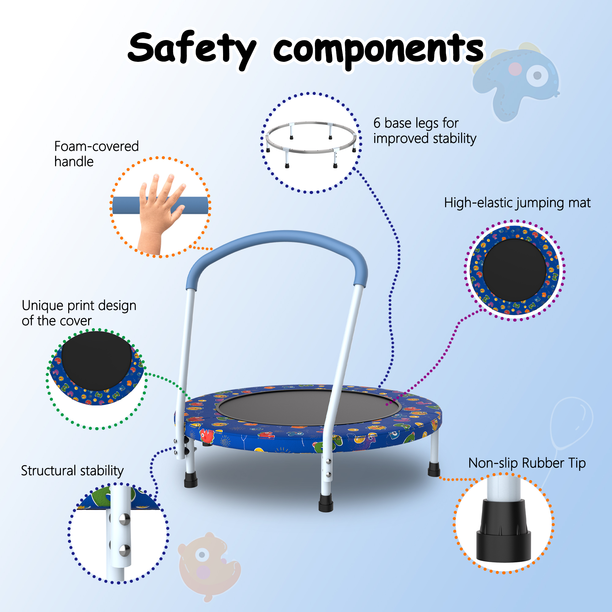 Product Name:36" Toddler Trampoline for Kids 1 Year Plus with Handle, Baby Gifts for Boys and Girls, Indoor and Outdoor