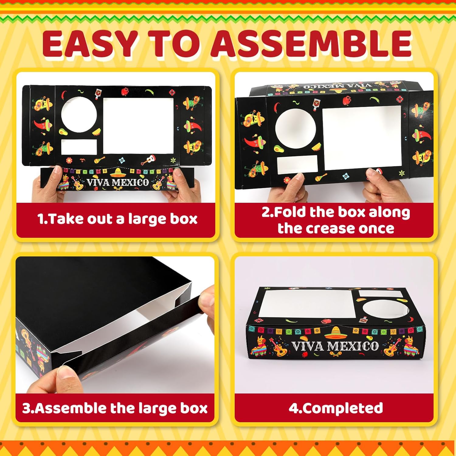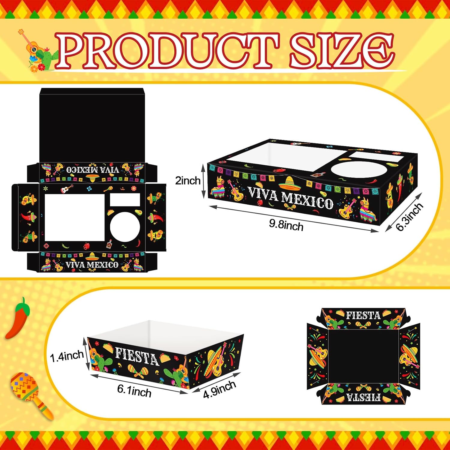 The 36 pieces Fiesta party decorations set is the ideal choice for you to hold a Mexico Festival theme party or event. The Mexican movie night paper snack set contains 18 Mexican boxes and 18 Mexican food trays, which can be combined in various ways to meet your different needs. The snack box has black background and exquisite pattern design, which combines the traditional elements of Mexico with modern aesthetics and adds a touch of vivid color to your holiday celebration. Whether holiday party or a family gathering, Mexican party plates can be the focus of your dinner table.