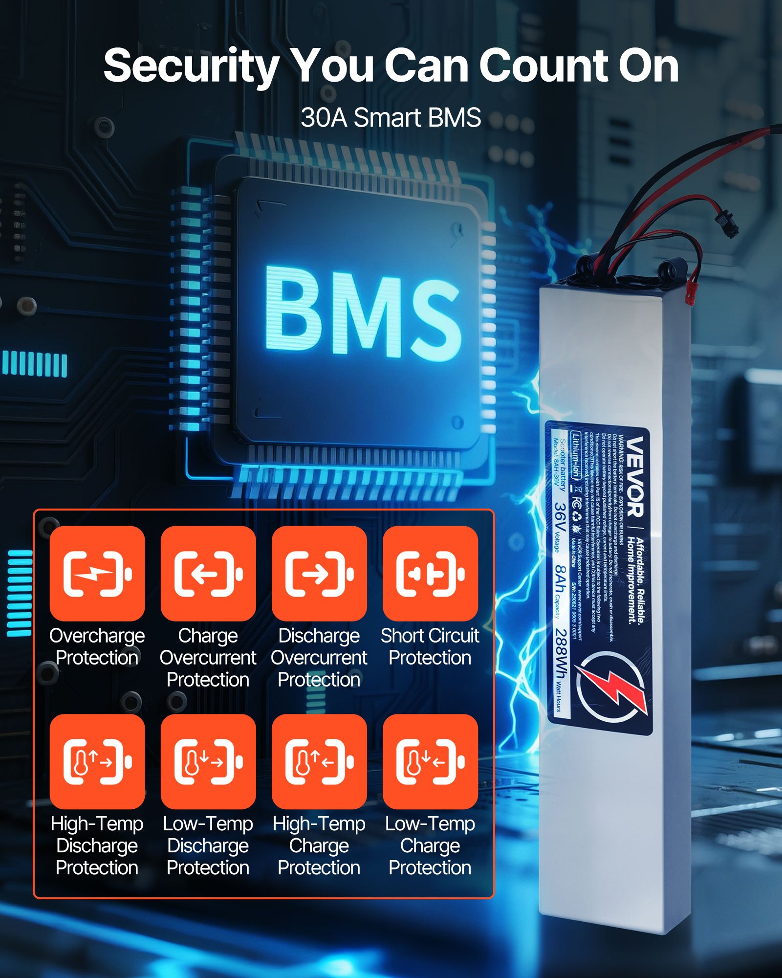 Smart 30A BMS Protection: The 50A BMS monitors battery status in real time. With insulated layer, fireproof bracket, and pure nickel connector, our battery for electric scooter guards against overcharge, over-discharge, short circuits, and high/low temps