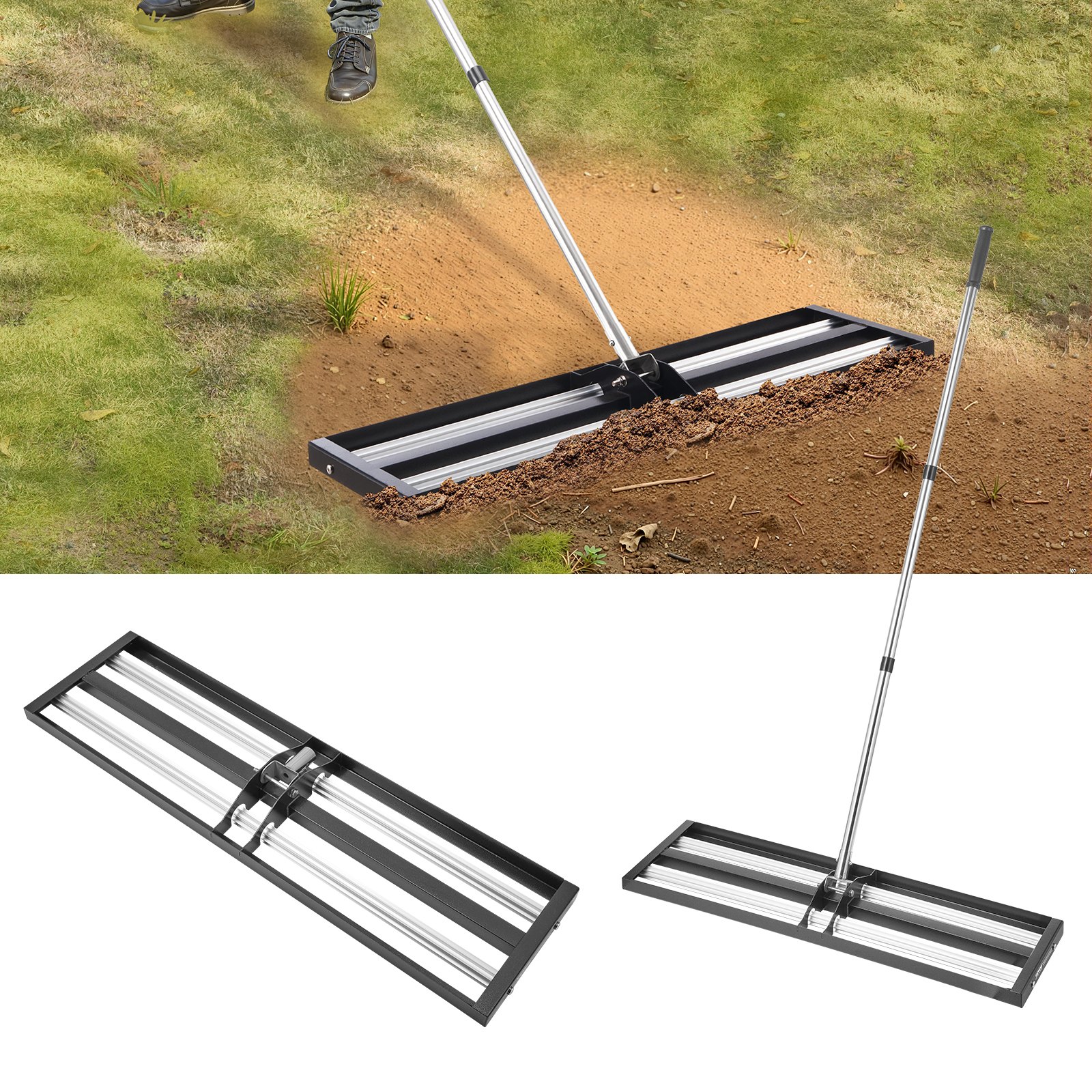 Large Lawn Rake: Our lawn leveling rake is equipped with a sturdy 10x36-inch base plate and aluminum alloy rollers, ensuring smooth and effortless operation. The stable base plate enhances the leveling experience and avoids the difficulty of being too light to push. It can quickly and effectively level the ground for you, saving time and effort.