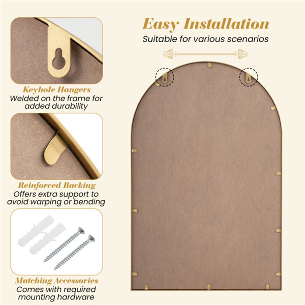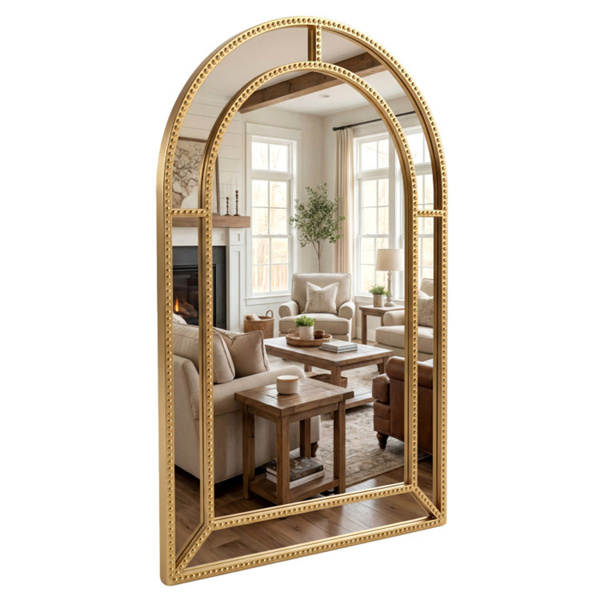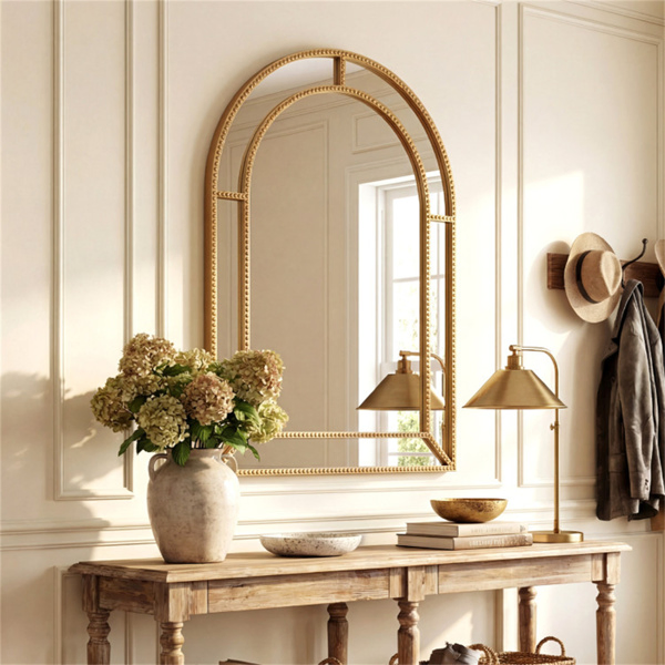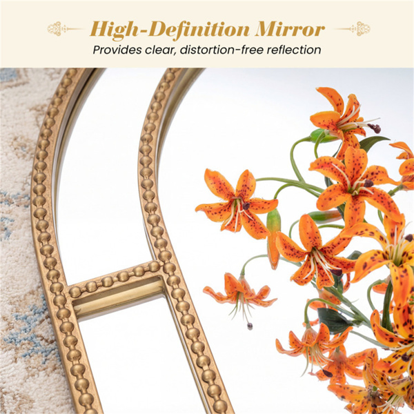 • Elegant Beaded Design: The gold beaded metal frame instantly elevates your room with its sophisticated design, adding a touch of glamour. This decorative mirror is the perfect statement piece for living rooms, bedrooms, hallways, fireplaces, or entryways, effortlessly enhancing your existing decoration. • Versatile Wall Decoration: This wall mirror complements a wide range of spaces and decoration styles, from modern to classic and more. Whether used as a focal point in your entry, above a console table, or integrated with wall art, this mirror brings a refined touch to any setting. • High-Definition Mirror: This gold framed mirror provides clear, distortion-free reflection to brighten and visually expand your space. It helps you check your appearance or reflect light throughout the room, making it both a functional and stylish addition to any wall in your home. • Reliable Construction: The sturdy metal frame provides enhanced durability and peace of mind. Moreover, the reinforced backing offers extra support to avoid warping or bending, making it a long-lasting accessory for your home. • Easy Installation: The keyhole hangers are welded directly onto the frame, offering reliable strength and stability. Matching accessories are included, so you can securely and quickly display your mirror.