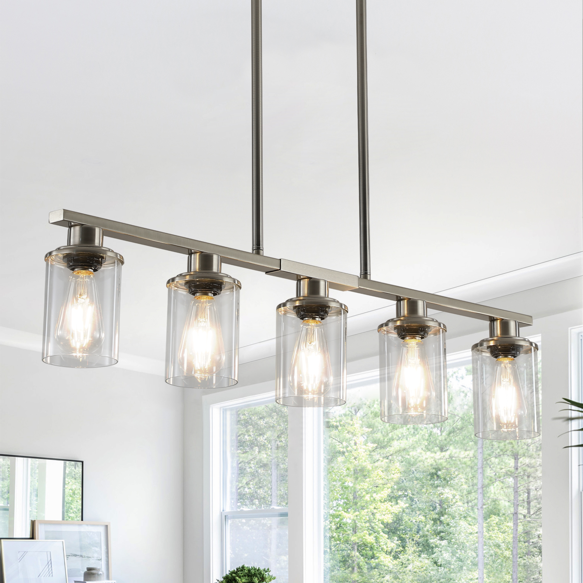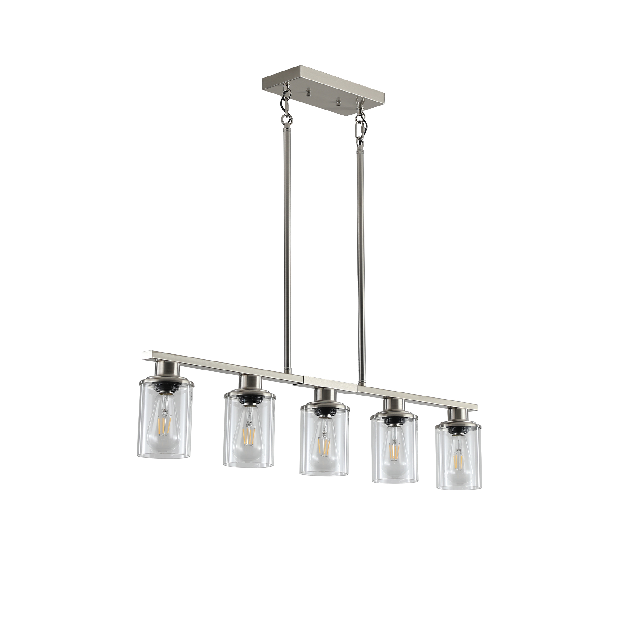 Modern and stylish design: Brushed nickel finish with clear glass lamp shade, simple atmosphere, suitable for the kitchen, dining room or island above the modern home.High-quality materials: The use of high-quality metal and durable glass materials to ensure the stability and durability of the lamp, long-term use is not easy to damage.Adjustable height: The lamp is equipped with an adjustable chain design, and the user can adjust the hanging height of the lamp according to the actual needs to adapt to the requirements of different space heights.Easy installation: The product design is simple, easy to install, even non-professionals can easily complete the installation, saving time and energy.