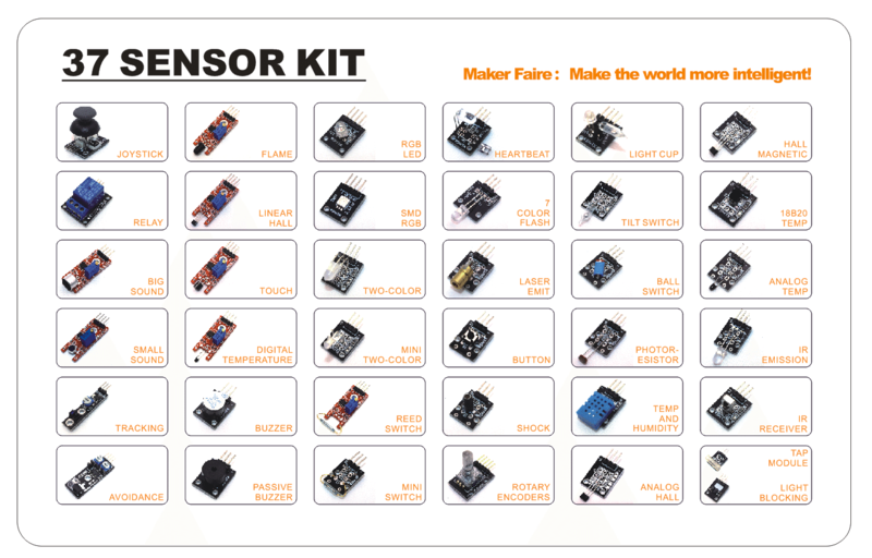 13.Infrared receiving sensor * 1 14.Linear Hall sensor * 1 15.Flame sensor * 1