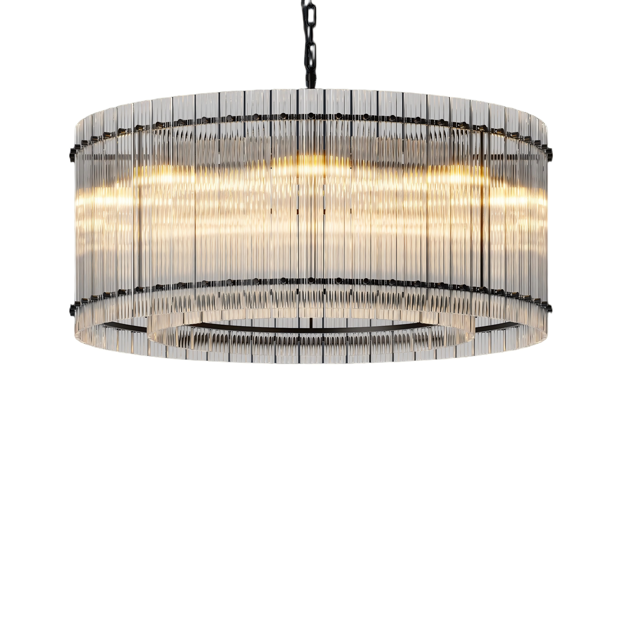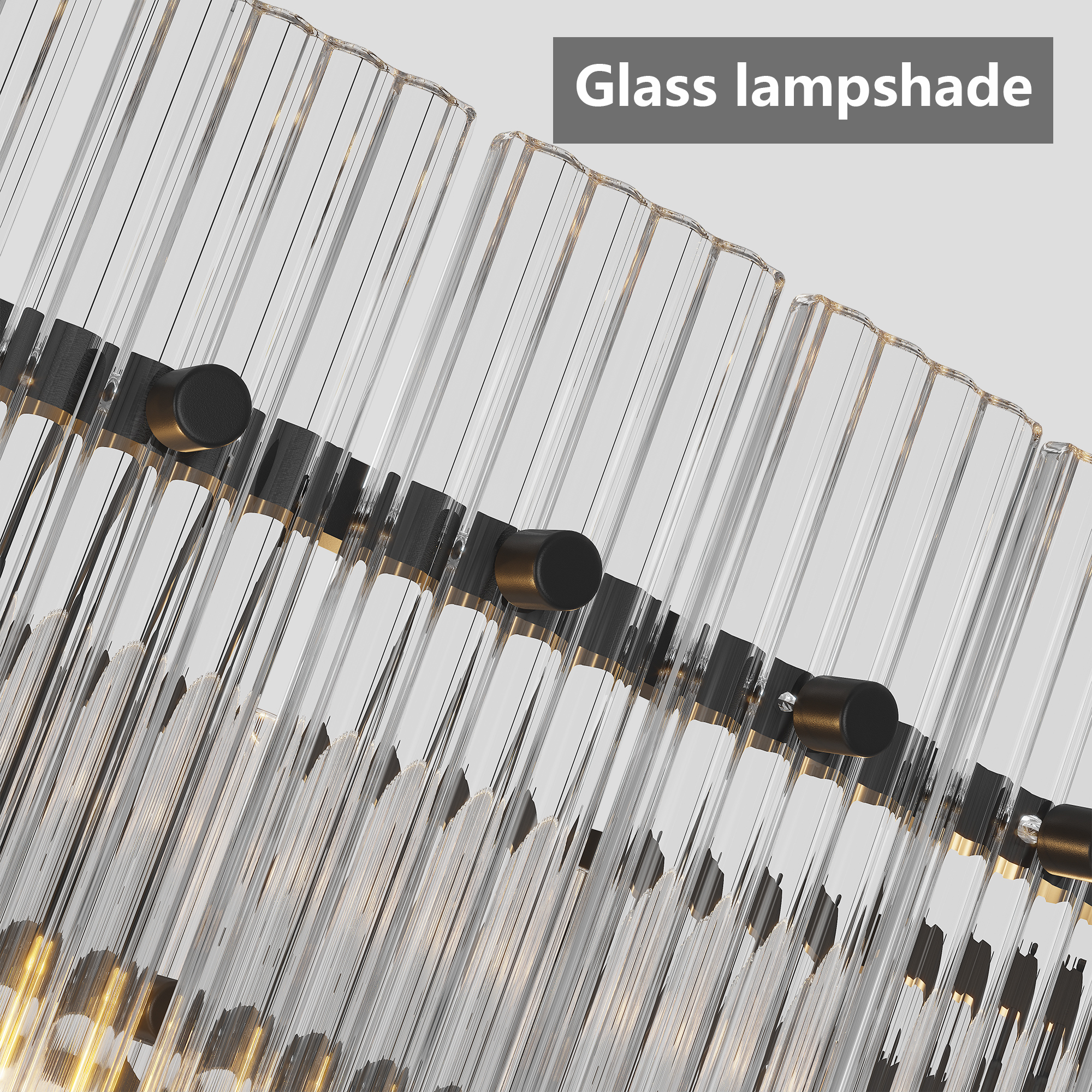 Unique Water Wave Design:This gorgeous chandelier features handmade corrugated glass.Each piece of glass is unique.Infuse your space with dazzling light.Matte gold coated metal frame can be used for a variety of occasions.Round Chandelier Size Weight:Unique double-tiered round chandelier measures 37 inches in diameter and 15.7 inches in height. Comes with a 71-inch hanging chain, and its hanging height can be adjusted according to the length of the chain!Upgrade Materials: The chandelier are made of materials and workmanship that are well above industry standards, and the details of the chandelier include a large number of handmade, just for the sake of the elegance and beauty of your home!External thickened cardboard box, the internal use of high-quality pearl cotton protective film, enough to withstand the long-distance transportation process of rough handling and bumping to ensure that the chandelier is 100% intact.Applicable Space:Metal chain link chandelier can be installed on the sloping ceiling, the chandelier is suitable for dining room, kitchen, living room, dining table,hotel, bedroom, office,foyer entryway,meeting room and so on.Also our chandeliers are perfect for high ceiling spaces!