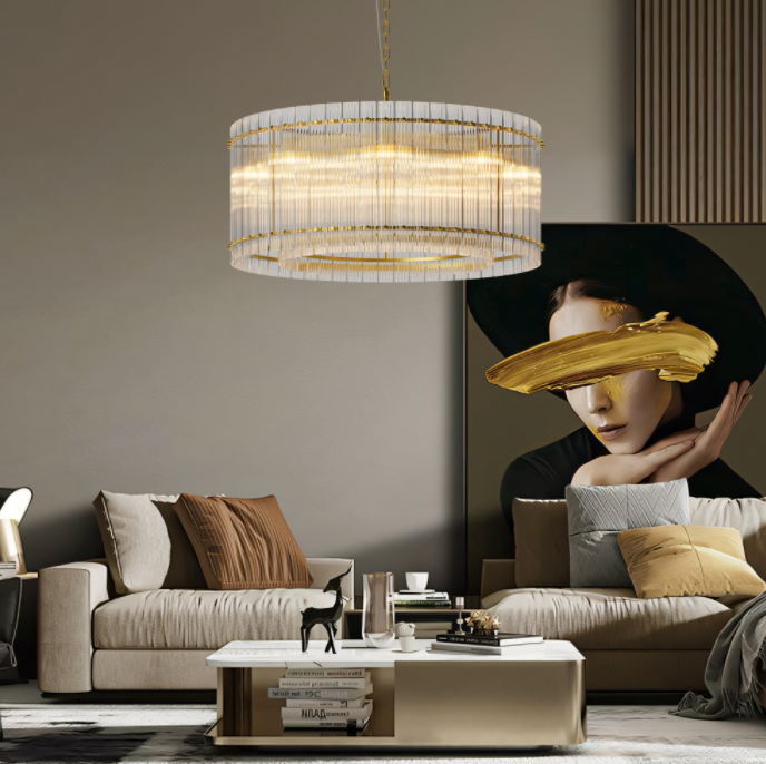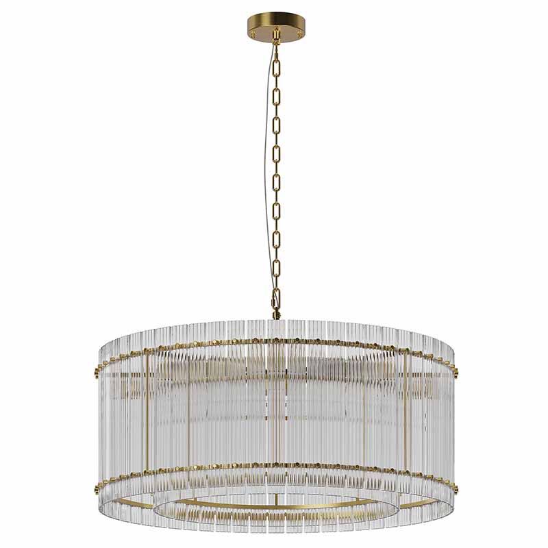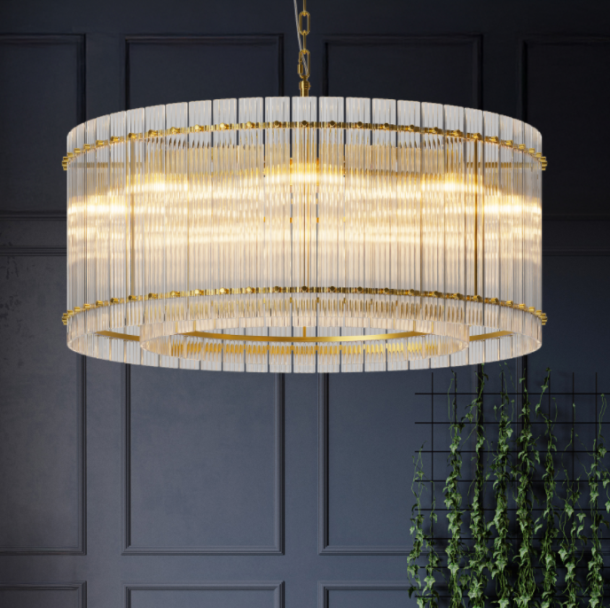 Unique Water Wave Design:This gorgeous chandelier features handmade corrugated glass.Each piece of glass is unique.Infuse your space with dazzling light.Matte gold coated metal frame can be used for a variety of occasions.Round Chandelier Size Weight:Unique double-tiered round chandelier measures 37 inches in diameter and 15.7 inches in height. Comes with a 71-inch hanging chain, and its hanging height can be adjusted according to the length of the chain!Upgrade Materials: The chandelier are made of materials and workmanship that are well above industry standards, and the details of the chandelier include a large number of handmade, just for the sake of the elegance and beauty of your home!External thickened cardboard box, the internal use of high-quality pearl cotton protective film, enough to withstand the long-distance transportation process of rough handling and bumping to ensure that the chandelier is 100% intact.Applicable Space:Metal chain link chandelier can be installed on the sloping ceiling, the chandelier is suitable for dining room, kitchen, living room, dining table,hotel, bedroom, office,foyer entryway,meeting room and so on.Also our chandeliers are perfect for high ceiling spaces!
