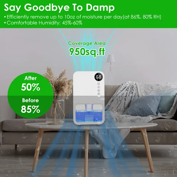 37.2OZ Dehumidifier Indoor Portable Small Dehumidifier With Sleep Mode 1-24H Timer 7-Color Lighting 950sq.ft Coverage Touch Control For Home Bathroom Basement Closet RV Bedroom
