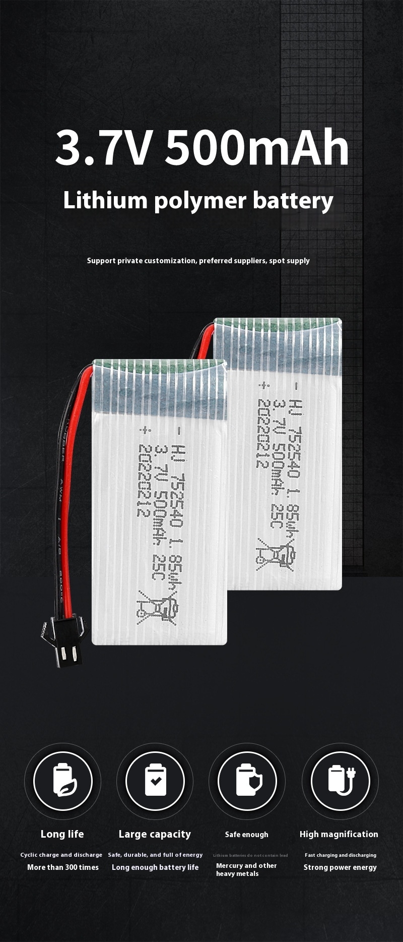 Nominal capacity Ah:500mAh